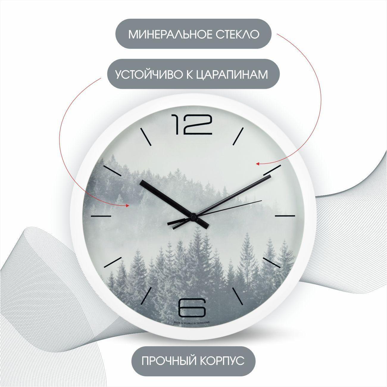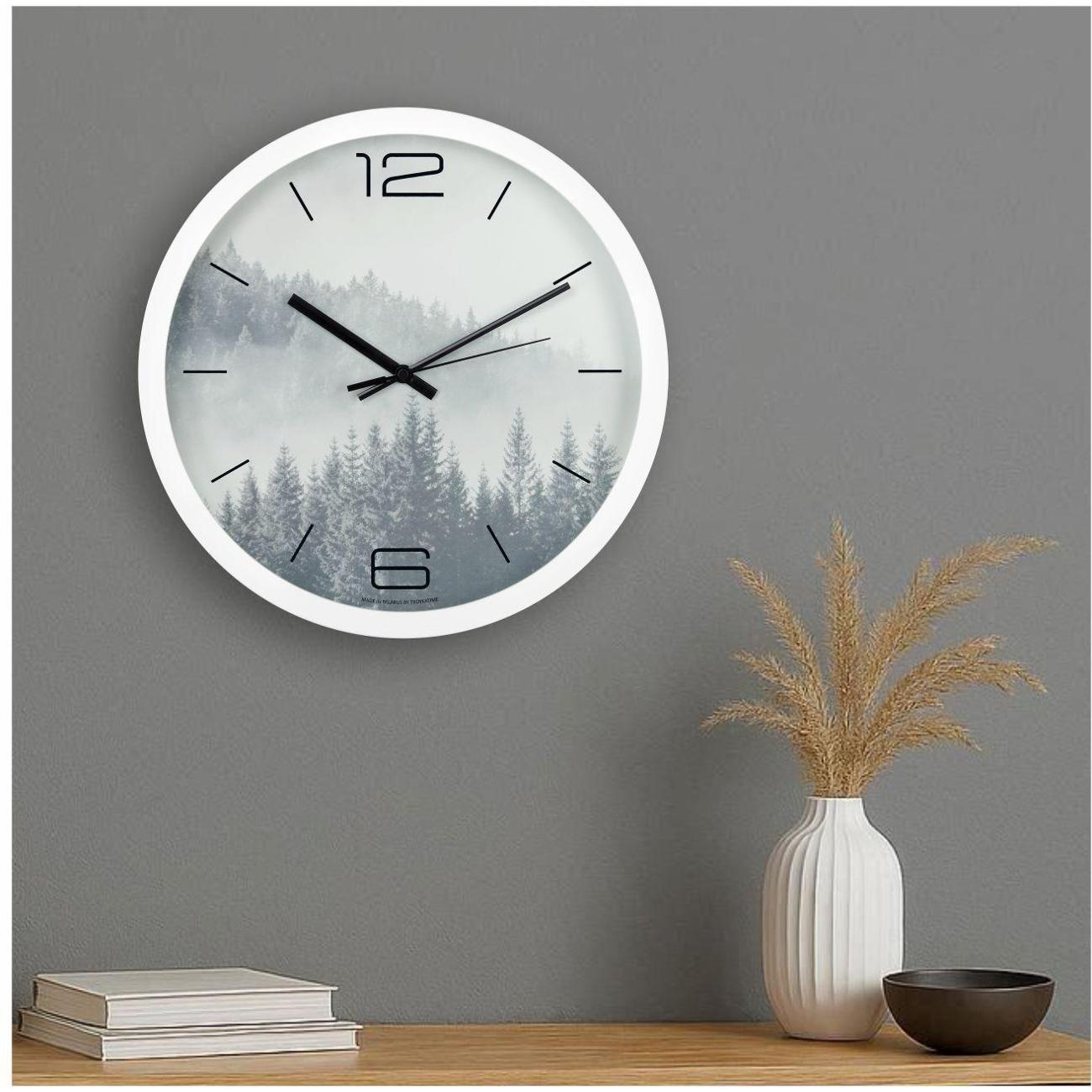 Настенные часы TROYKATIME станет незаменимым акцентов в любом помещении: кухни, гостиной, спальне и даже детской комнаты. Универсальный белый цвет настенных часов подойдет под любой интерьер.