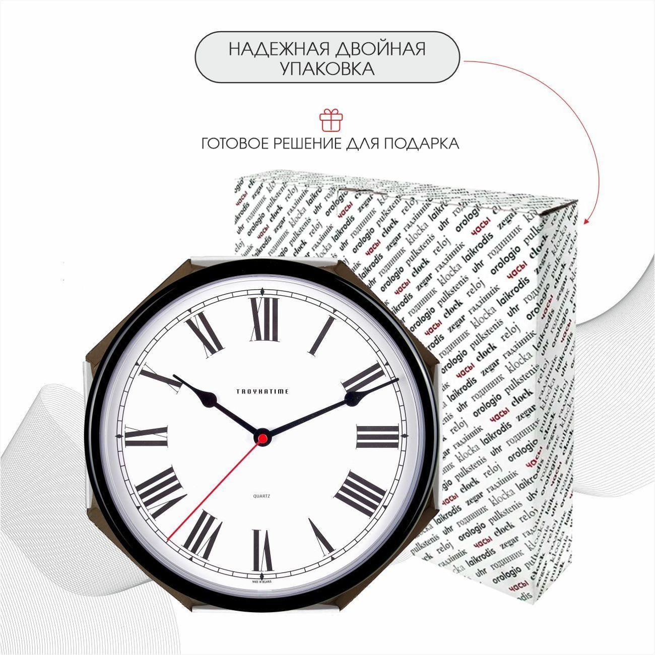 В заключение, настенные часы Troykatime с римскими цифрами на циферблате станут отличным дополнением к вашему интерьеру и надежным помощником в определении времени.