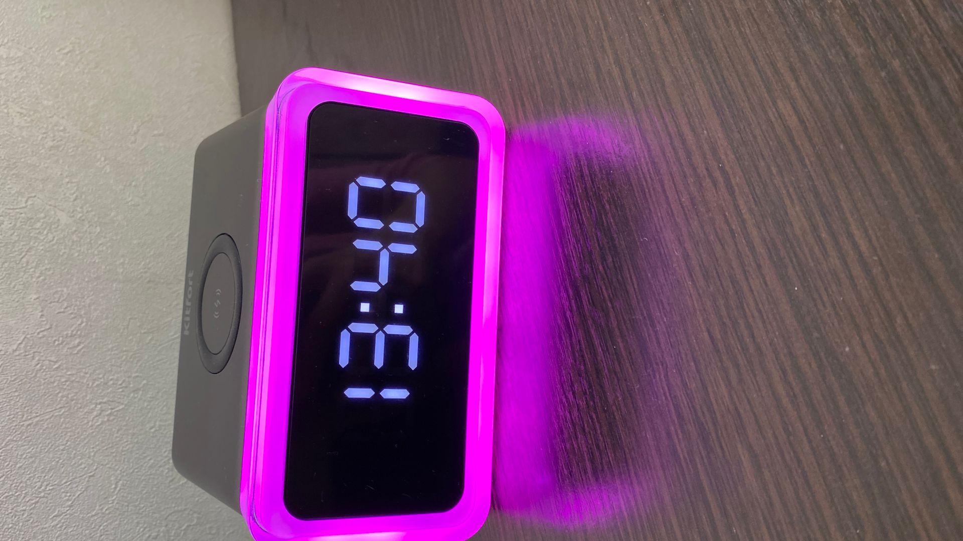 Отличные часы! Рекомендую товар к покупке! Удобно, что есть без проводная зарядка , можно слушать радио через блютус, громкость хорошая. Удобная кнопка выключения будильника, часы подойдут под любой интерьер. Так же самое важное, что есть регулировка яркости циферблата.