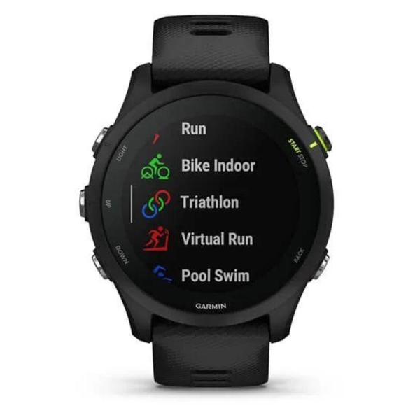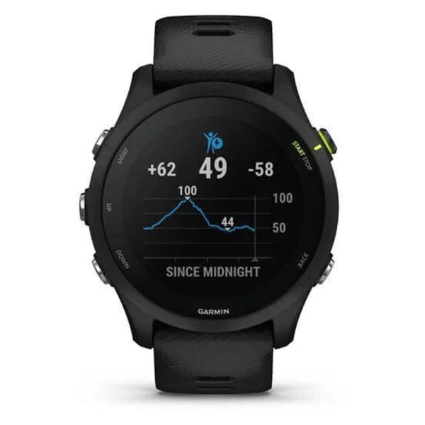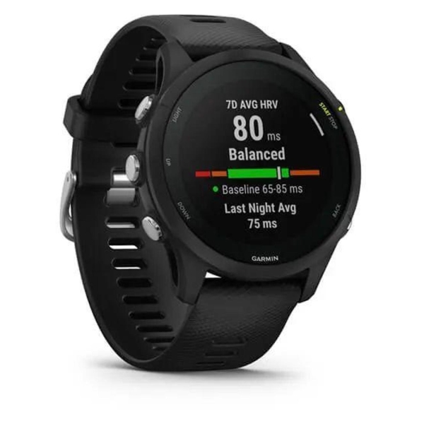 Часы с GPS трекером Garmin Forerunner 255 Music Black оснащены цветным MIP-дисплеем диагональю 1,3" с функцией подсветки. Устройство совместимо с операционными системами Android 5.0 и выше, iOS 8.0 и выше. В качестве штатной операционной системы использована Garmin. Для передачи данных конструкция данной модели включает в себя встроенный модуль Bluetooth и осуществляет поддержку Wi-Fi. За электропитание отвечает встроенный аккумулятор емкостью 500 мА*ч, который способен обеспечить до 14 дней работы. Аккумулятор заряжается посредством USB-порта.