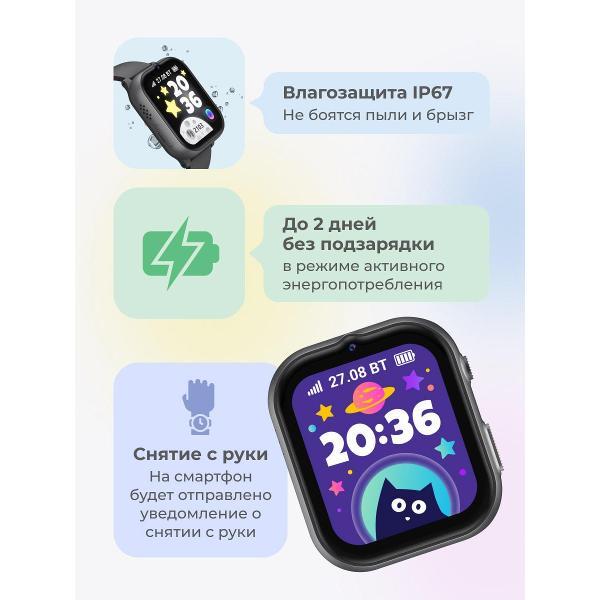 Функция видеомониторинга дает возможность удаленно просматривать обстановку вокруг часов, а аудиомониторинг позволяет прослушивать окружающие звуки без сигнала на устройстве. Встроенный динамик и микрофон обеспечивают двухстороннюю голосовую связь, поддерживают голосового помощника.