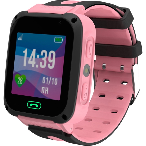Часы с GPS трекером Jet Kid Connect, розовые выполнены во влагостойком корпусе из пластика с силиконовым ремешком. Модель снабжена кнопкой приема вызова, кнопкой SOS, датчиком движения и сенсорным экраном диагональю 1,44 дюйма.