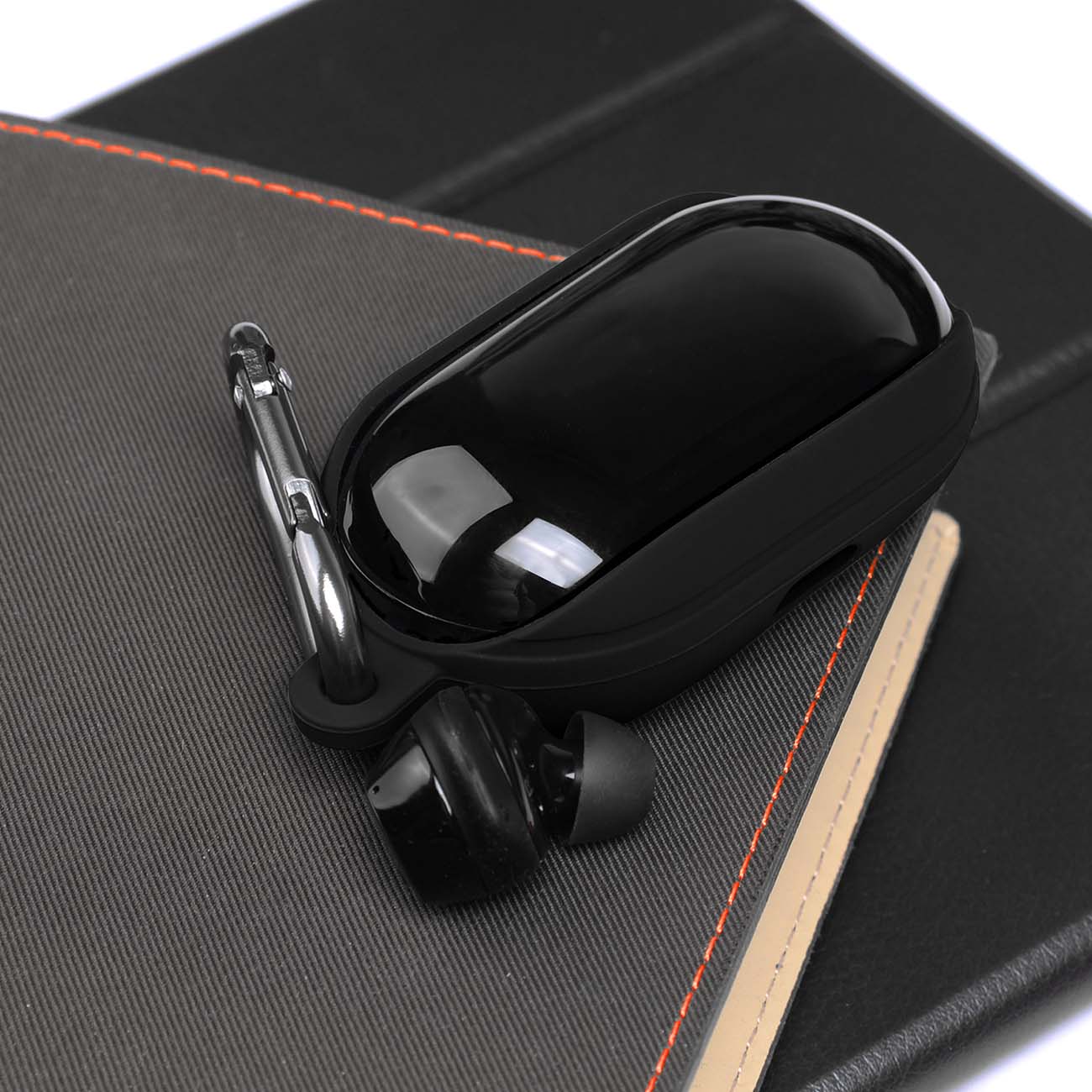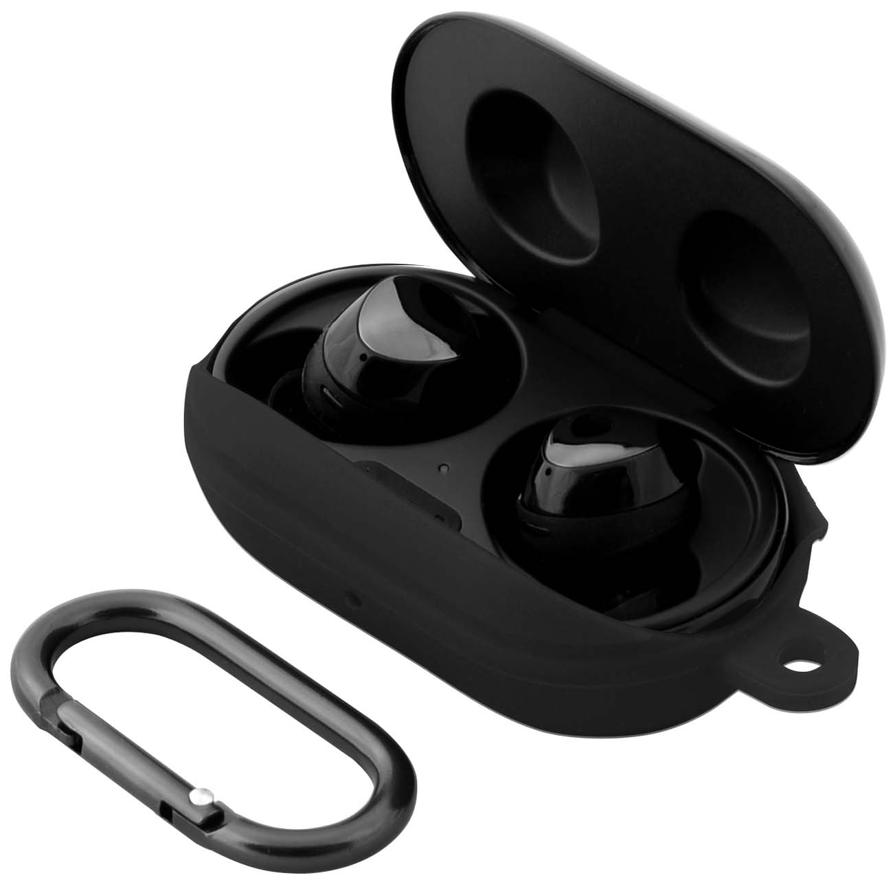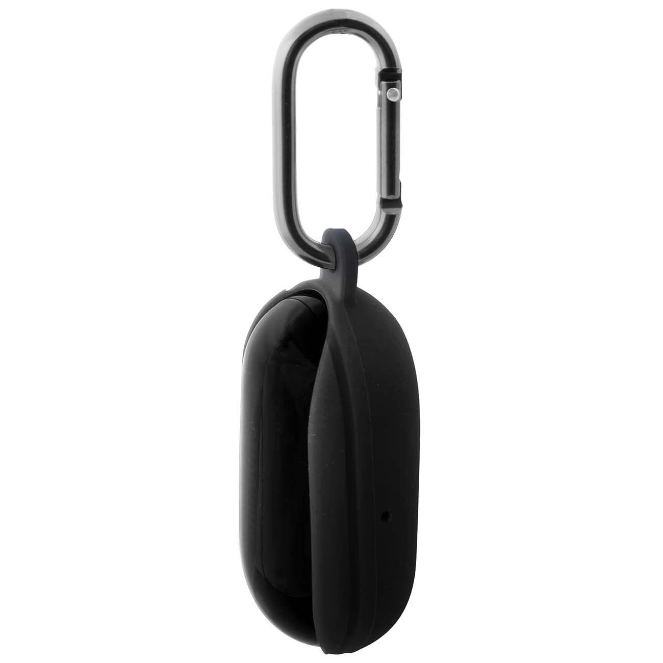 Аксессуар выполнен из мягкого, но прочного силикона – его очень сложно порвать. Материал приятен на ощупь и не скользит в руке. В комплекте есть металлический карабин – вы сможете подвесить кейс в качестве брелока для ключей или закрепить на одежде, чтобы он всегда был под рукой.