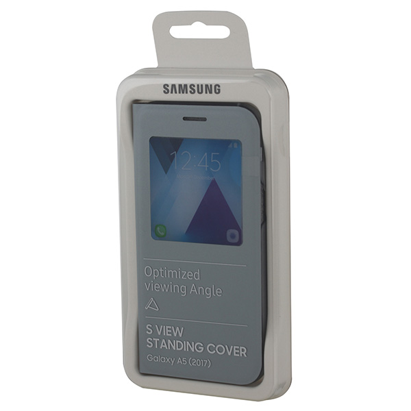 Чехол Samsung S-View Standing Cover снабжён прозрачным окном, совместимым с сенсорным экраном смартфона. Оно позволяет проверять время, статус звонков и сообщений, а также набирать номер и делать фотографии, не откидывая при этом крышку.