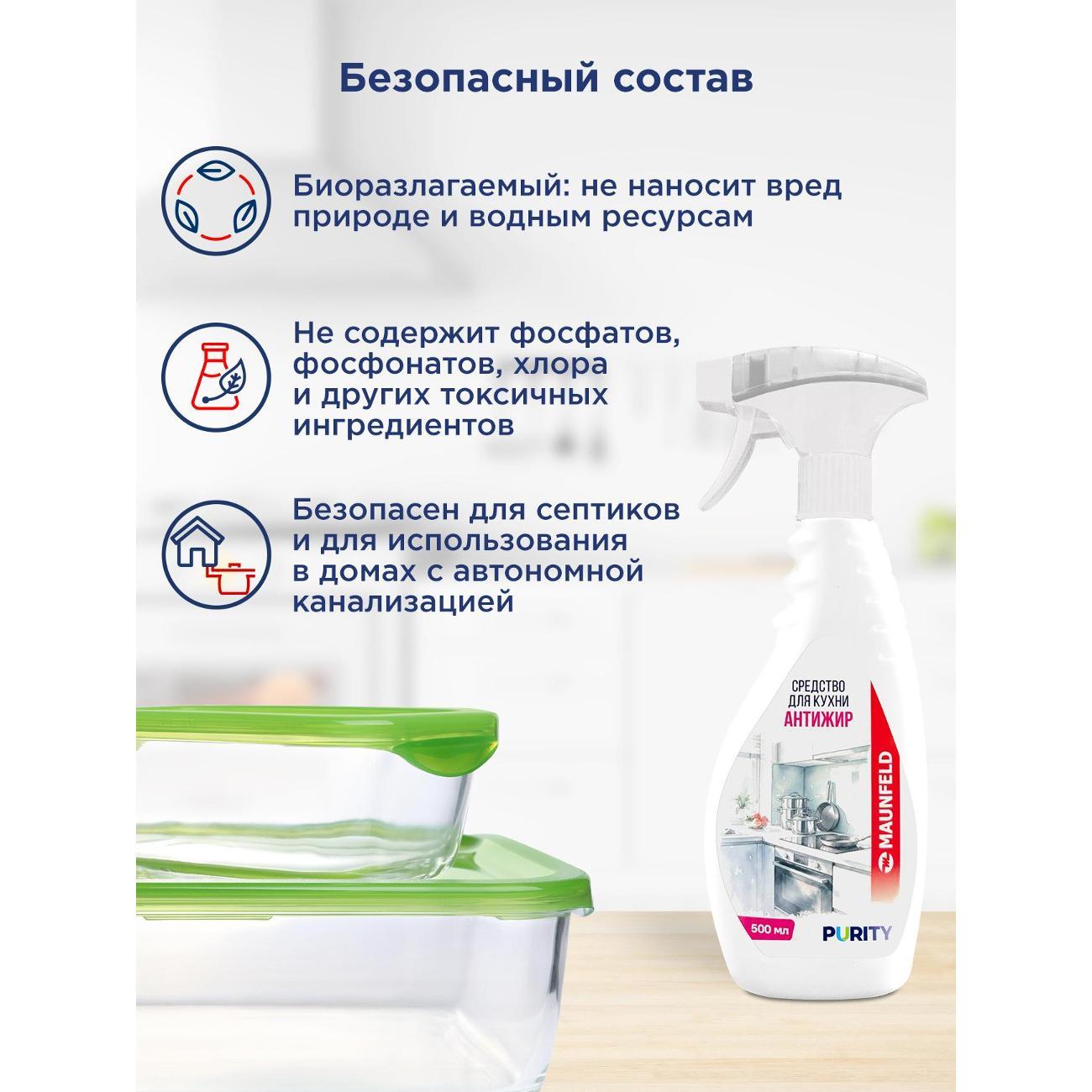 Вы можете купить Чистящее средство для кухни Maunfeld Антижир Purity, 500 мл в магазинах М.Видео по доступной цене. Чистящее средство для кухни Maunfeld Антижир Purity, 500 мл: подробное описание, фото и отзывы реальных покупателей, характеристики, возможность скачать инструкции и подобрать аксессуары.