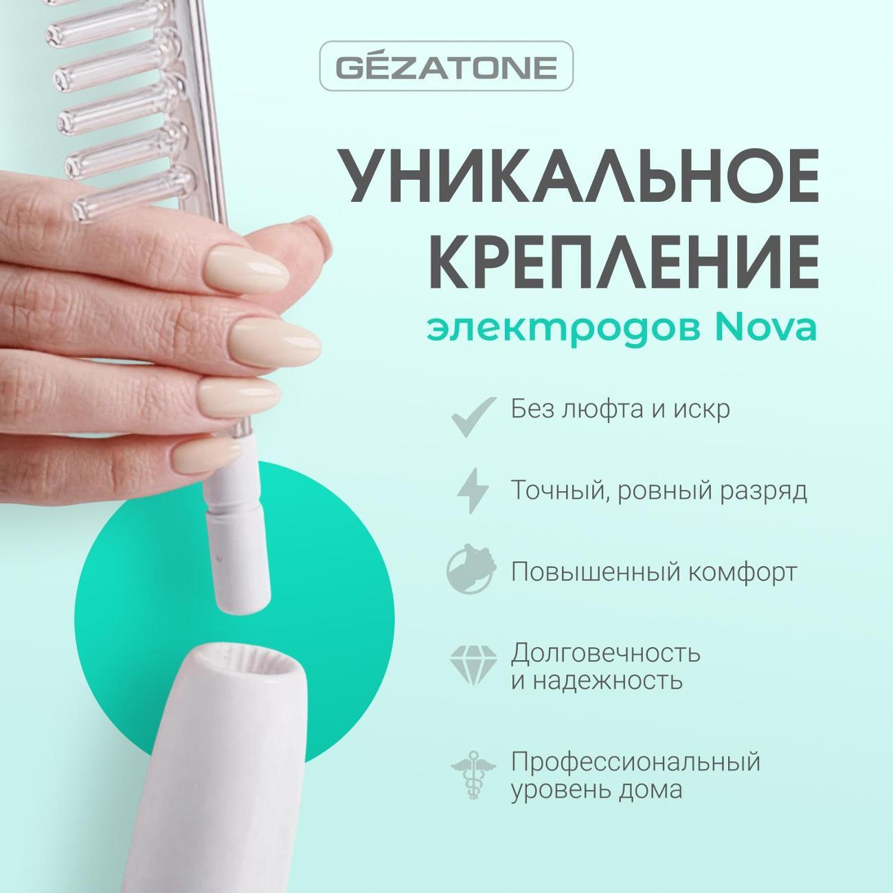 Прибор оснащен продуманной системой крепления электродов, которая фиксирует насадки без люфта и обеспечивает стабильный контакт, создавая равномерный разряд. В комплект входят четыре универсальные насадки: грибок, капля, лепесток и расческа. Насадка-расческа усиливает кровоток и питание волосяных луковиц, снижая выпадение и себорею. Электрод «капля» применяется для локальных воспалений, ускоряя их подсушивание и заживление. «Грибок» и «лепесток» подходят для обработки лица и тела, повышения упругости кожи и снижения дискомфорта в мышцах.