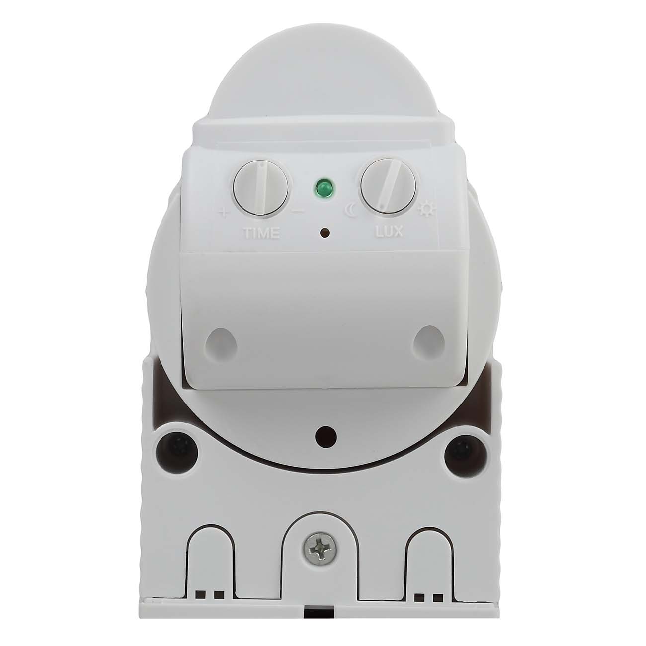 Датчик движения «Эра» MD 012 обнаруживает человека на расстоянии до 6 м с помощью инфракрасных лучей. Он автоматически включает освещение при необходимости и выключает его с задержкой от 10 секунд до 7 минут. Благодаря встроенному датчику света питание подаётся только в темноте – днём вы экономите электроэнергию. Устройство выдерживает нагрузку до 1200 Вт. К нему можно подключать лампы с микропроцессорным управлением.