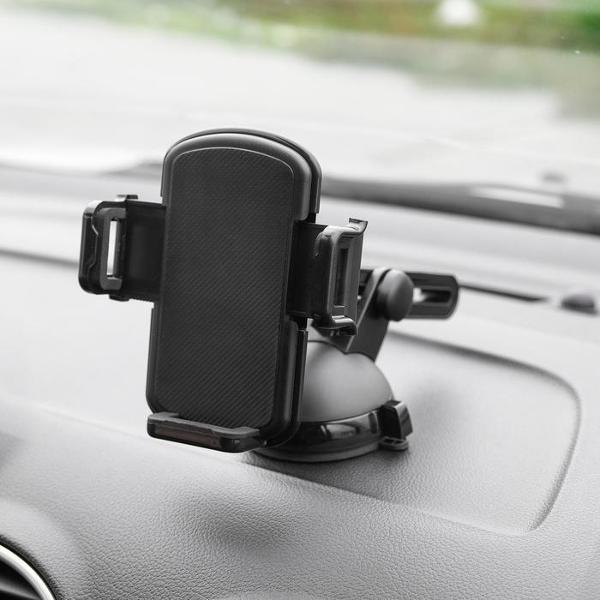 Автомобильный держатель для смартфона AVS AH-1901 черного цвета с регулируемым поворотом подходит для любых сотовых телефонов шириной до 9,3 см. Изделие оснащено широкой присоской для надежной фиксации на приборной панели. Материал — прочный гигиеничный пластик. Модель поворачивается вокруг оси на 360°.