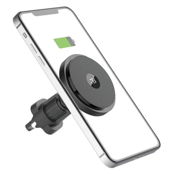Автомобильный держатель для смартфона Bixton MagHolder A-1878 фиксируется на вентиляционной решетке. Телефон удерживается на магните и выравнивается по отношению к индукционной зоне. Крепежный крючок регулируется по длине. Конструкция подходит для закрепления на круглых и квадратных решетках. В набор входит пластина-опора.