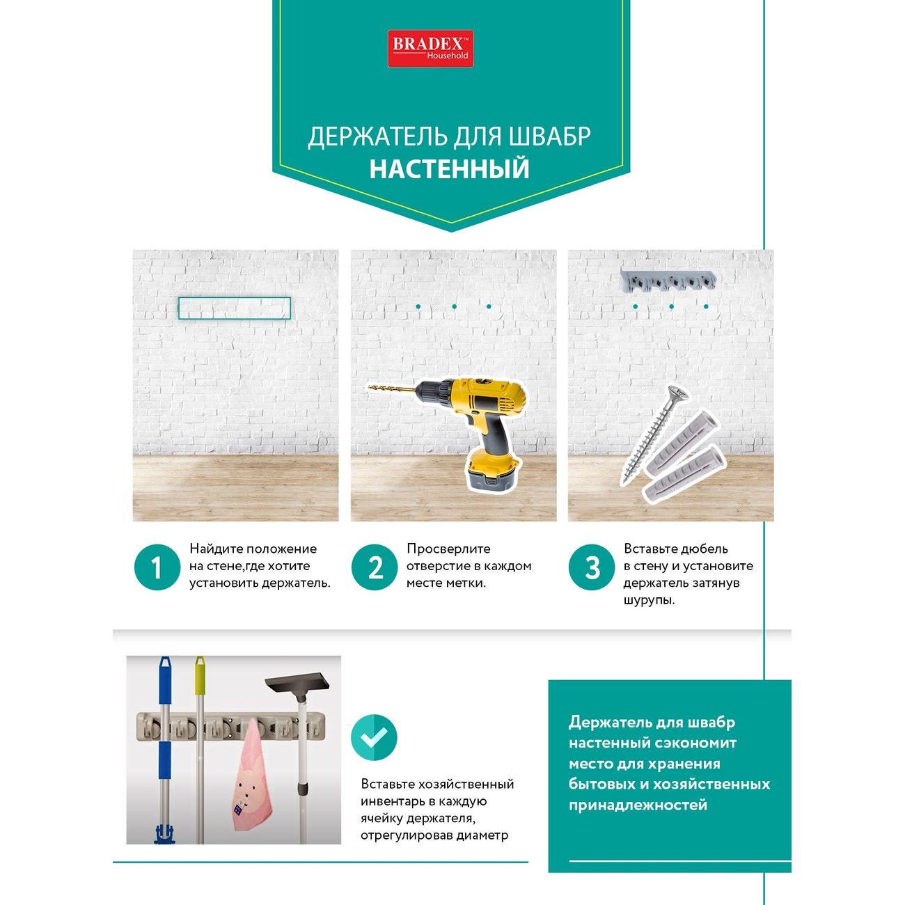 Вы можете купить Держатель для швабр Bradex TD 0565 в магазинах М.Видео по доступной цене. Держатель для швабр Bradex TD 0565: подробное описание, фото и отзывы реальных покупателей, характеристики, возможность скачать инструкции и подобрать аксессуары.