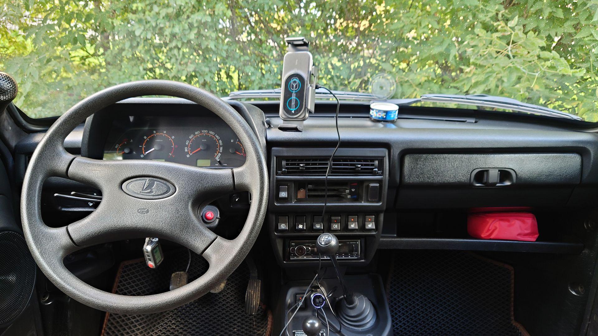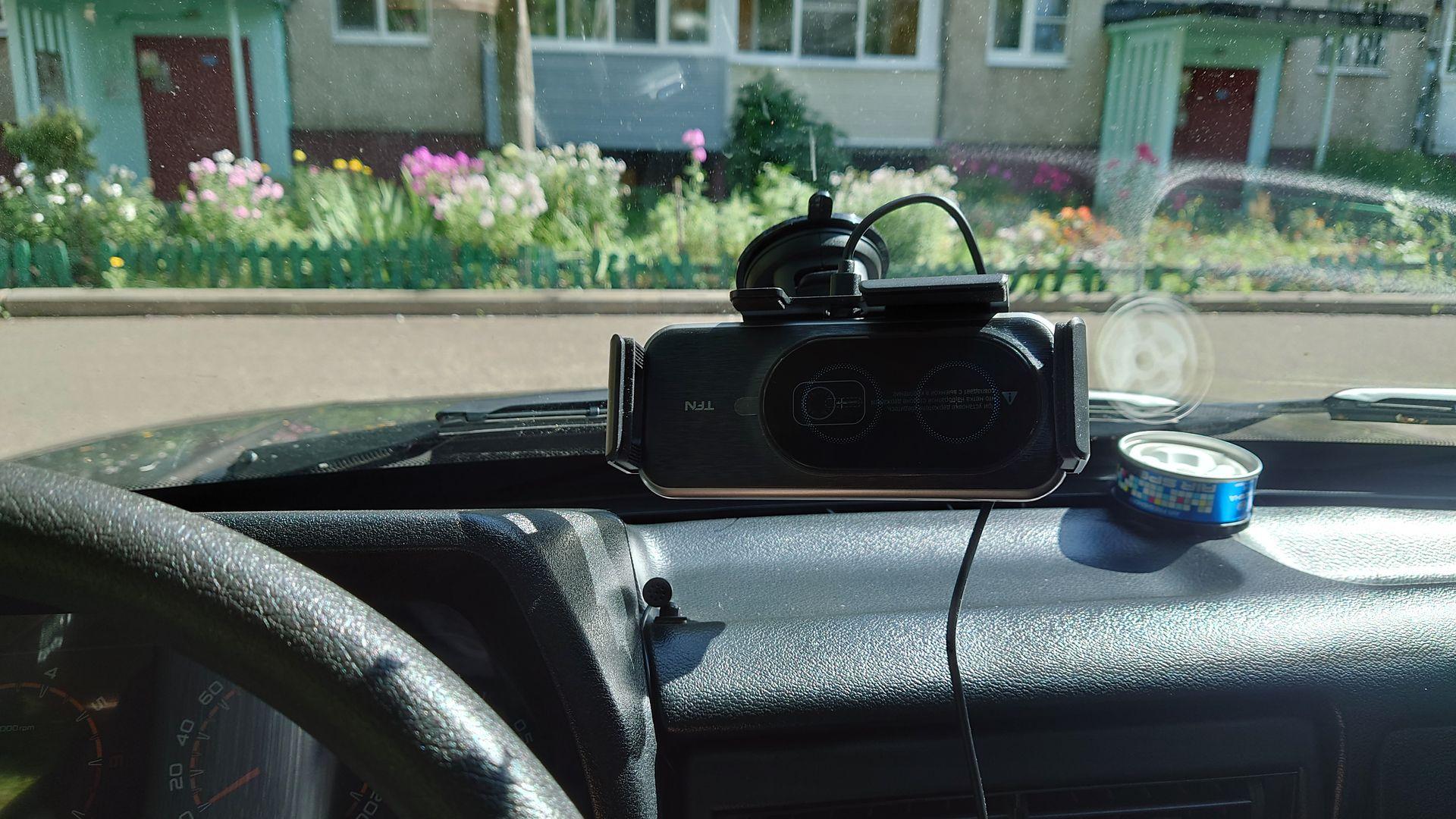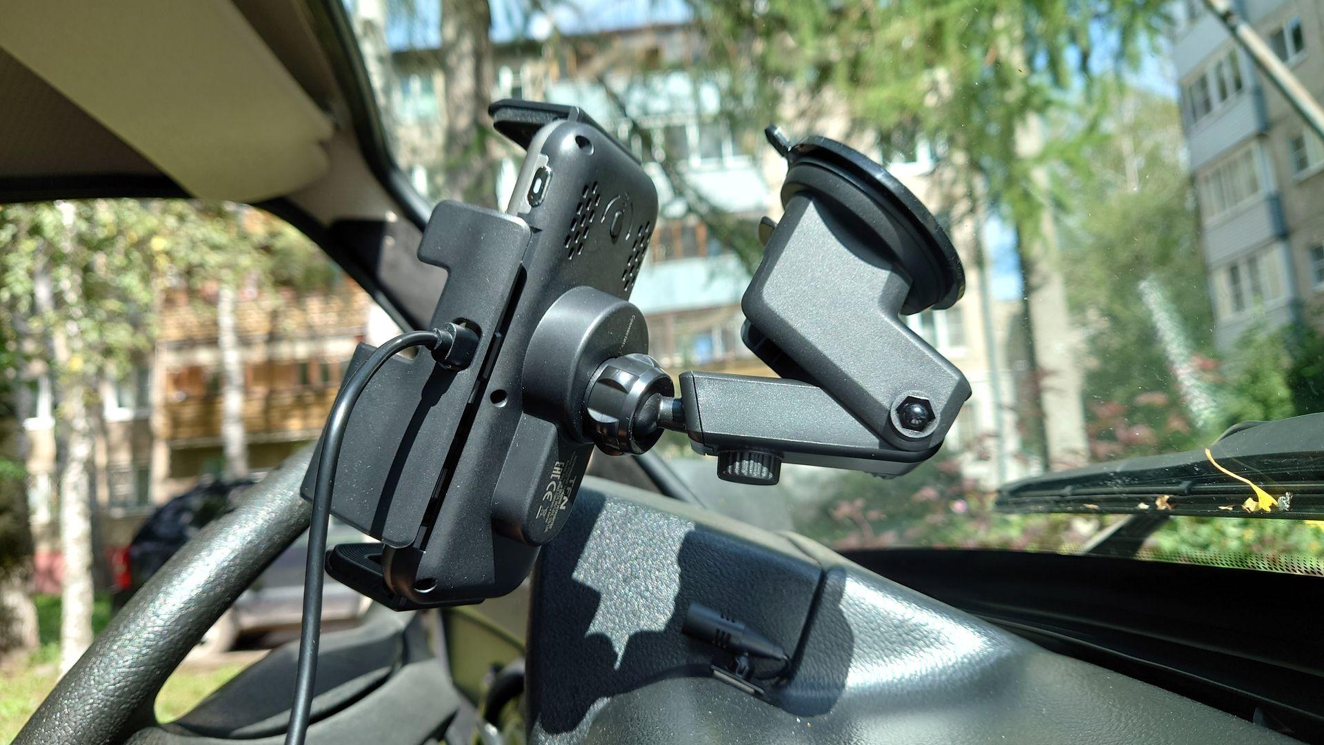 Хорошая присоска на стекло или приборную панель. С большим диапазоном регулировок.