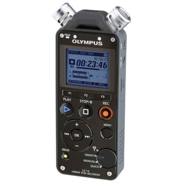 Olympus LS-14 – цифровой диктофон профессионального уровня. Он оборудован системой высокочувствительных стереомикрофонов и создан как для музыкантов-любителей, которые хотят записать свою репетицию, так и для тех, кому необходимо многофункциональное устройство для записи голоса.