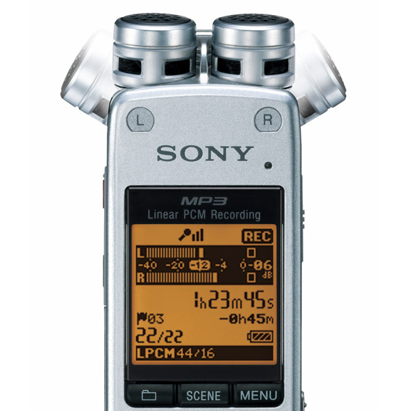 Двусторонний микрофон, запись: линейный PCM и MP3, воспроизведение MP3/WMA/AAC, 2 ГБ, слот для карт памяти