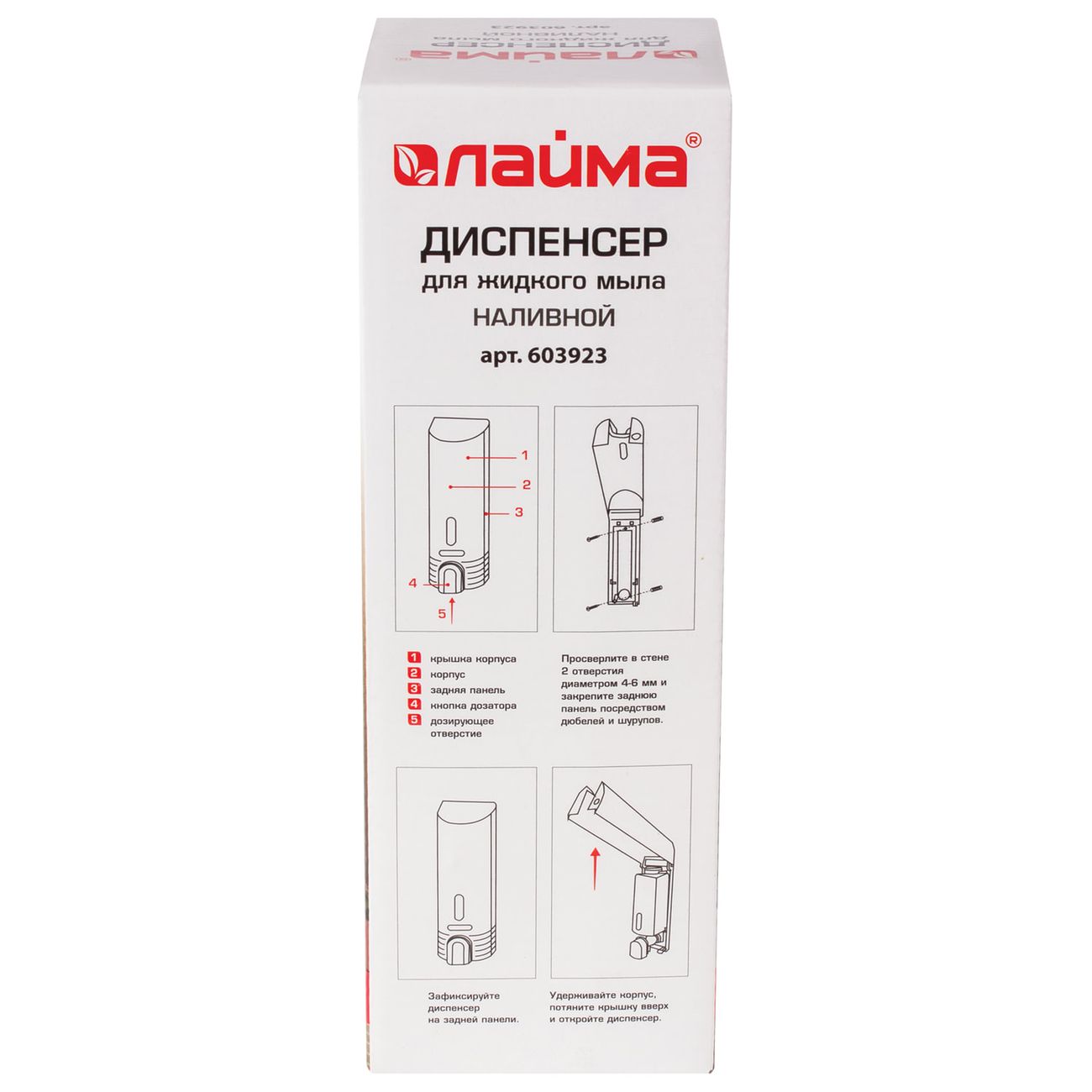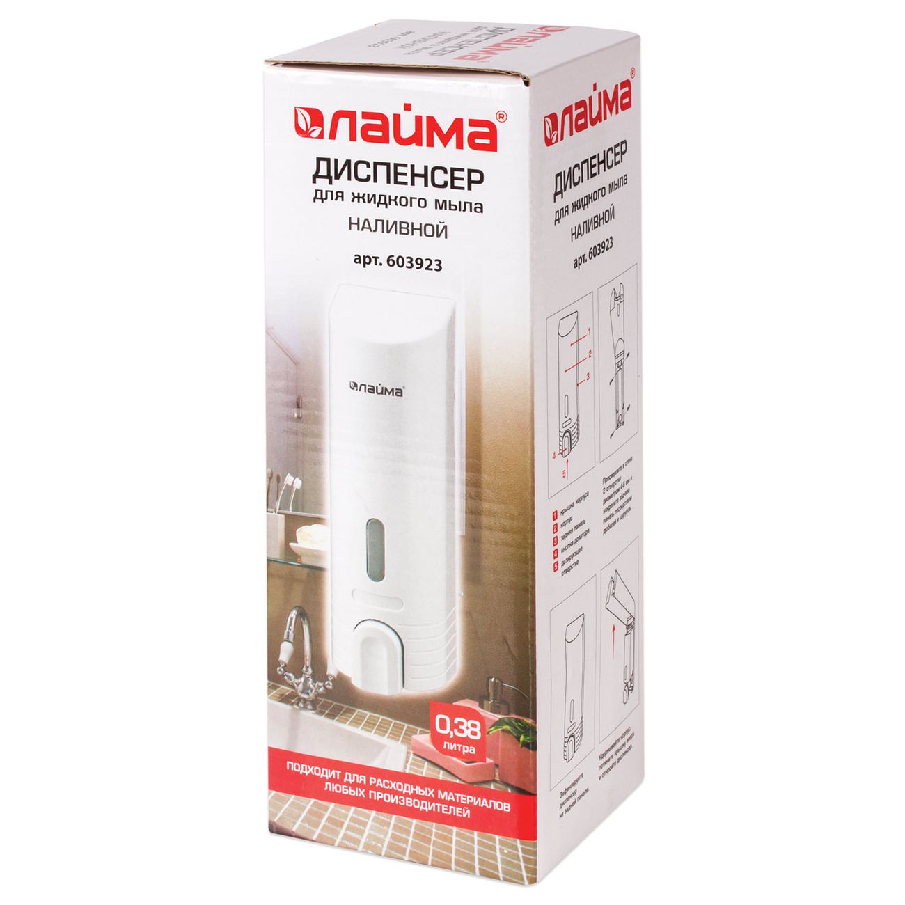 Диспенсер «Лайма» 603923 предназначен для дозирования жидкого мыла и обладает объемом 0,38. Он выполнен из ударопрочного ABS-пластика и оснащен окном контроля за уровнем наполнения средством. Управление устройством — механическое, с помощью кнопки на корпусе. В комплектацию входят необходимые крепежные детали.