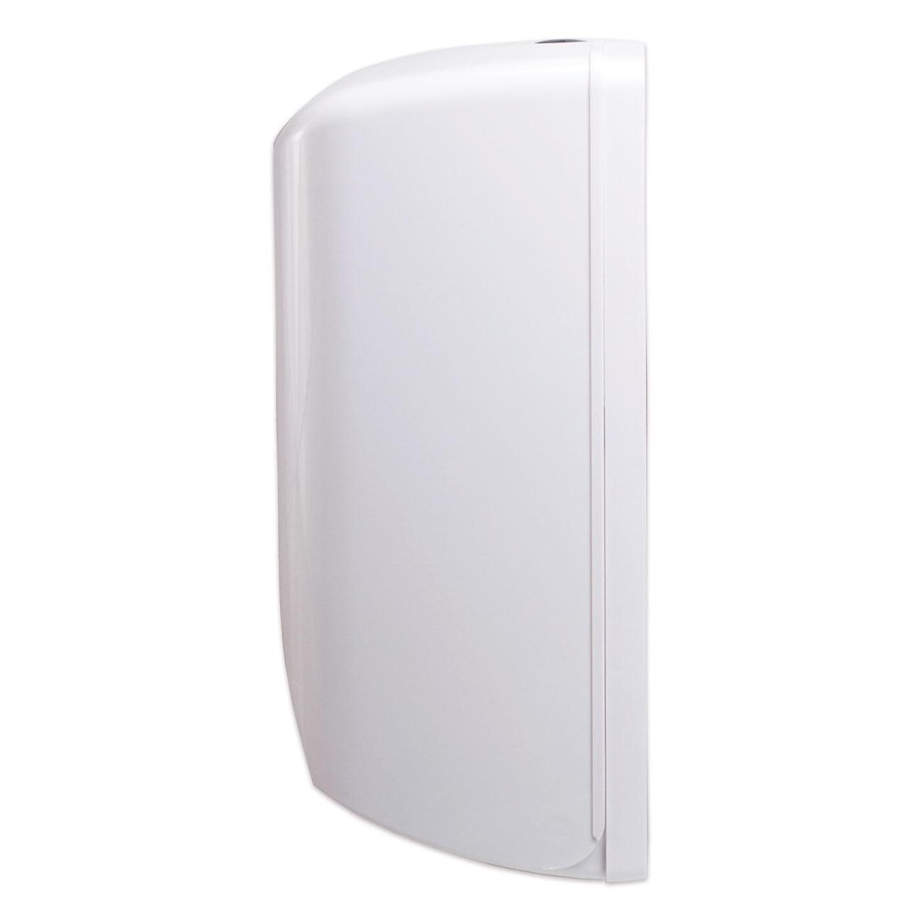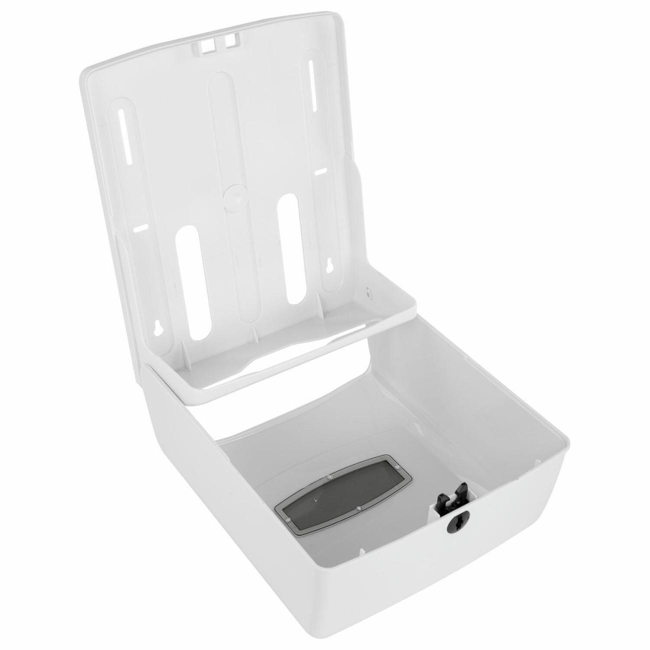 Антивандальный корпус изготовлен из ударопрочного ABS-пластика, позволяет использовать две пачки полотенец V-сложения. Обеспечивает высокий уровень гигиены и комфортную подачу полотенец. Имеется окошко для контроля остатка полотенец. Сочетается с расходными материалами других производителей. Оборудован самозахлопывающимся замком с ключом. В комплект входят крепежные материалы для установки. Размер - 312х262х142 мм.