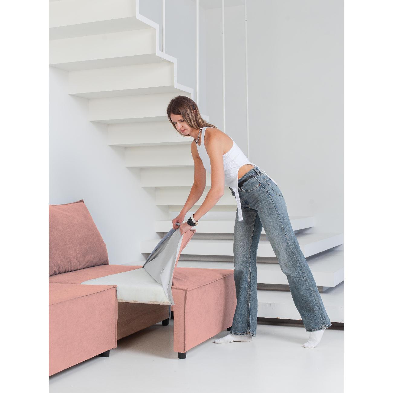Складная конструкция еврокнижка позволяет быстро разложить диван в полноценное спальное место, а встроенный большой ящик для хранения станет отличным местом для хранения постельного белья или других вещей. Чехол из качественного материала ткань велюр снимается, легко чистится и добавляет стильный акцент в интерьер, будь то стиль лофт или классический.