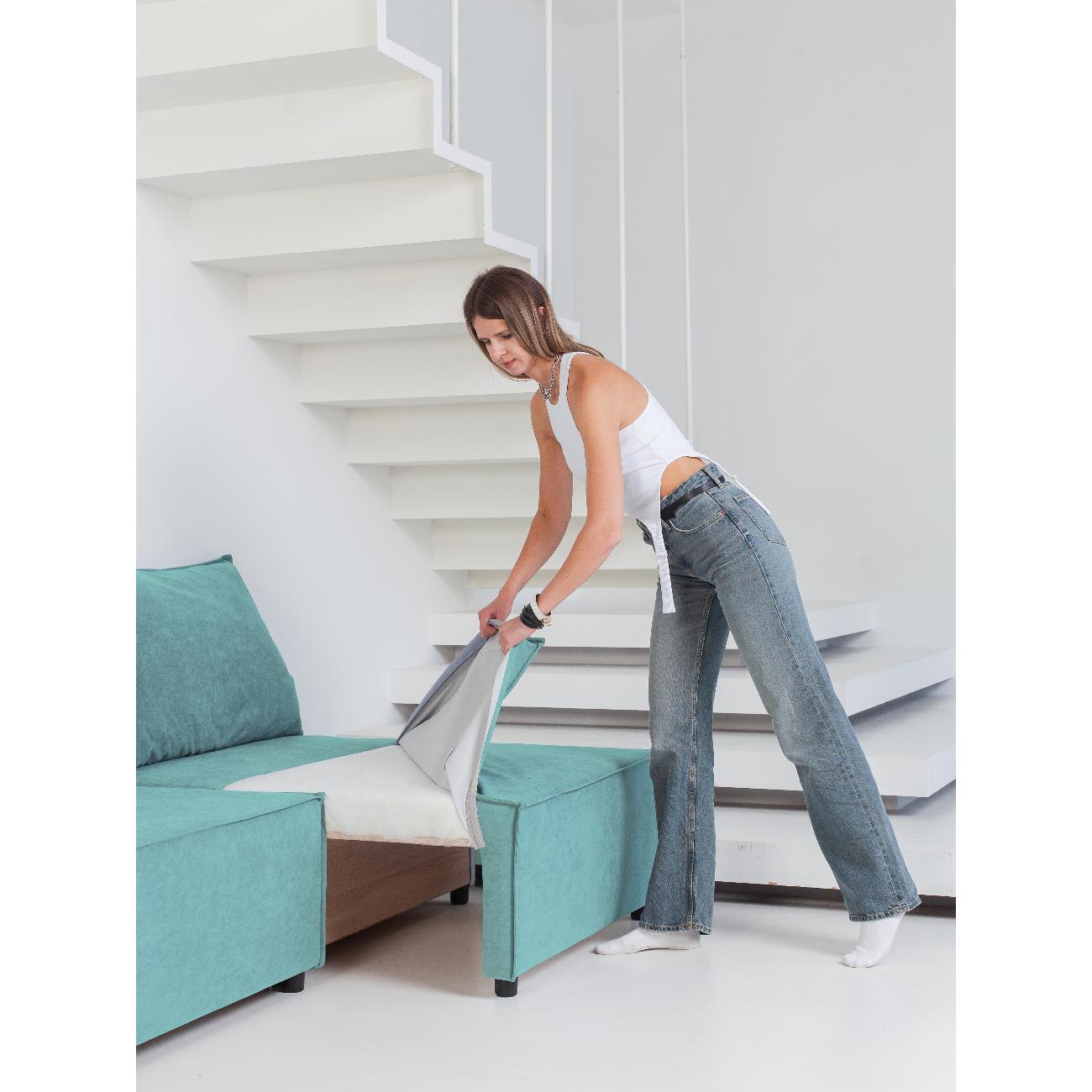 Складная конструкция еврокнижка позволяет быстро разложить диван в полноценное спальное место, а встроенный большой ящик для хранения станет отличным местом для хранения постельного белья или других вещей. Чехол из качественного материала ткань велюр снимается, легко чистится и добавляет стильный акцент в интерьер, будь то стиль лофт или классический.