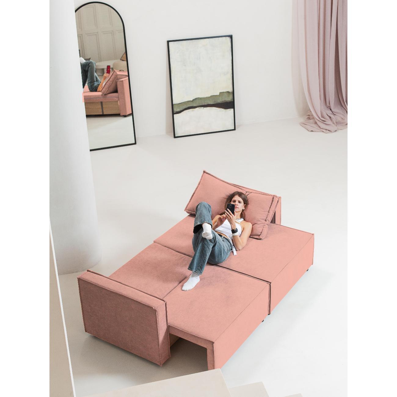 Розовый цвет дивана отлично впишется в любой интерьер, добавляя изюминку в домашнюю атмосферу. Удобный механизм раскладывания позволяет легко трансформировать его из уютного сидения в просторную кровать, что особенно актуально для небольших квартир или гостиных. Благодаря своим габаритам, диван станет отличным местом для сна, обеспечивая комфортный отдых и поддержку вашему телу.