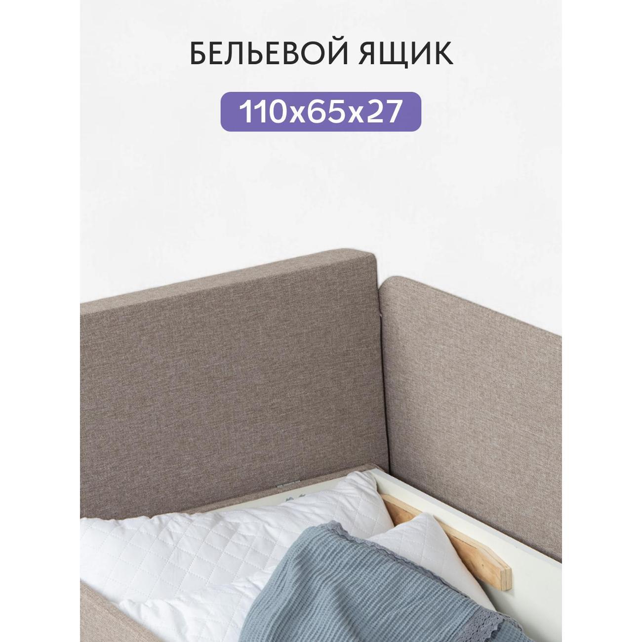 Особенностью данной модели является наличие бельевого ящика. Он станет незаменимым помощником в хранении вещей, позволяя поддерживать порядок в пространстве. Бельевой ящик предоставляет достаточно места для хранения постельного белья или иных принадлежностей.
