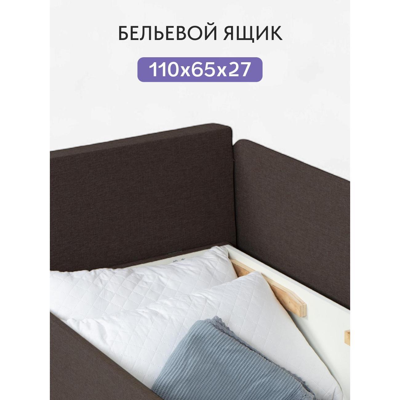 Особенностью данной модели является наличие бельевого ящика. Он станет незаменимым помощником в хранении вещей, позволяя поддерживать порядок в пространстве. Бельевой ящик предоставляет достаточно места для хранения постельного белья или иных принадлежностей.