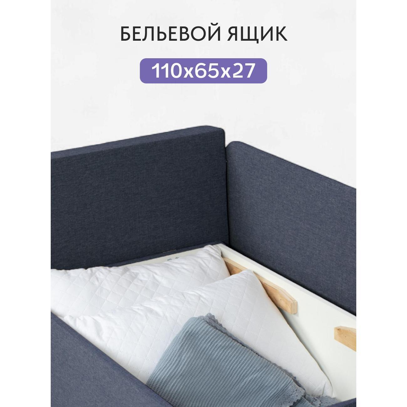 Особенностью данной модели является наличие бельевого ящика. Он станет незаменимым помощником в хранении вещей, позволяя поддерживать порядок в пространстве. Бельевой ящик предоставляет достаточно места для хранения постельного белья или иных принадлежностей.