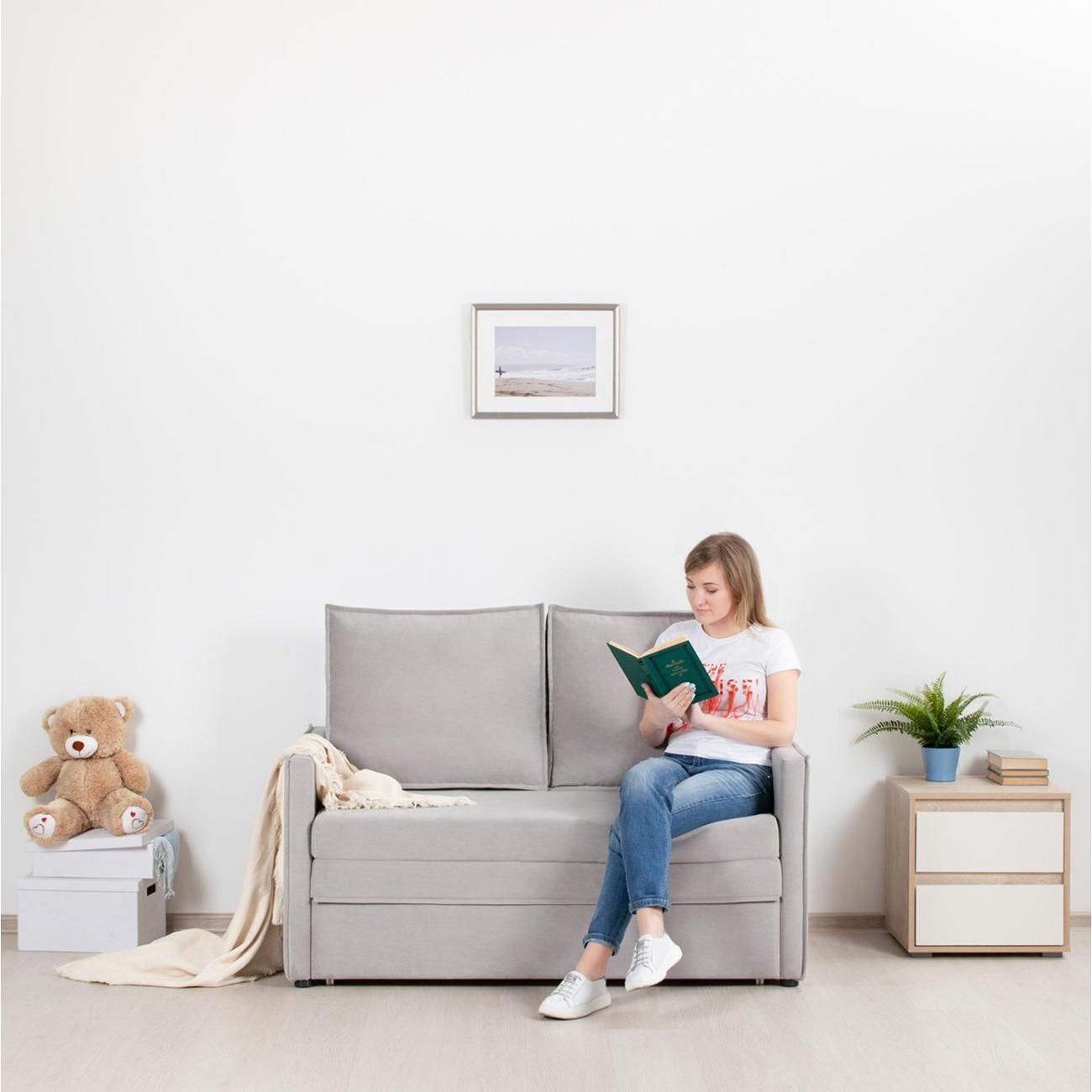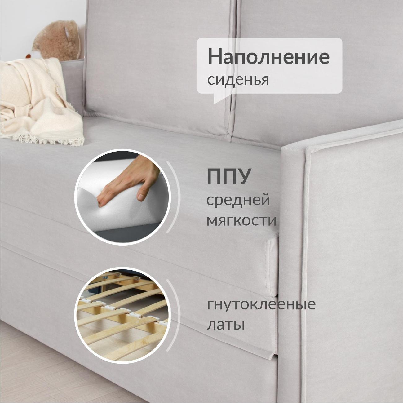 3. Использование: посадка «ровной спины», как писали в комментариях, но убирая подушки, можно и развалиться. Сидеть удобно, не проваливается ничего, достаточно держит форму. По высоте почти как мои стулья, за высоким столиком сидеть мне нормально. Спать не пробовали, допишу отзыв после того, как испытаю. Есть запах новой мебели, мне он нравится, скоро выветрится. В целом для меня стало идеальным решением для квартиры в 33 кв м, стоит на кухне, встал идеально в пространство между стеной и холодильником (ширина дивана соответствует заявленному), образует самостоятельное рабочее и спальное место, а также место приема пищи. Вдвоем сидеть одновременно не очень просторно, поэтому оставили стул, но если на нем сидеть родителю с ребенком - вполне хватает места.