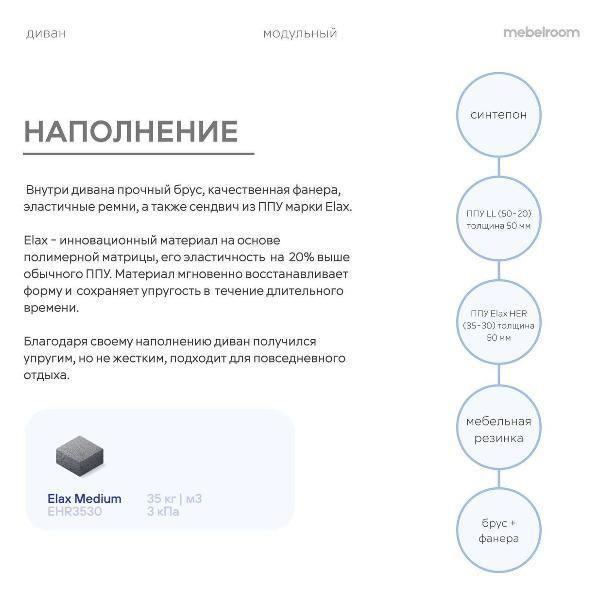 Наполнение: инновационный поролон Elax — мягкость, упругость и сохранение формы даже при активной эксплуатации.