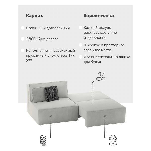 Прямой модульный диван-кровать Mebelroom.shop — компактное, стильное и функциональное решение для дома, квартиры-студии или офиса. Современный дизайн в стиле лофт и универсальная модульная конструкция позволяют использовать диван как прямой или угловой, создавая оптимальное пространство для отдыха и сна.