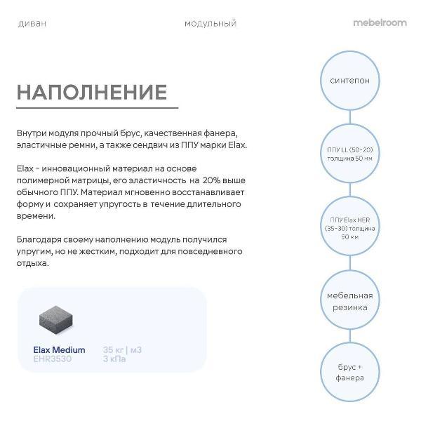 Наполнение: инновационный поролон Elax с повышенной эластичностью, сохраняет форму и мягкость на протяжении многих лет.