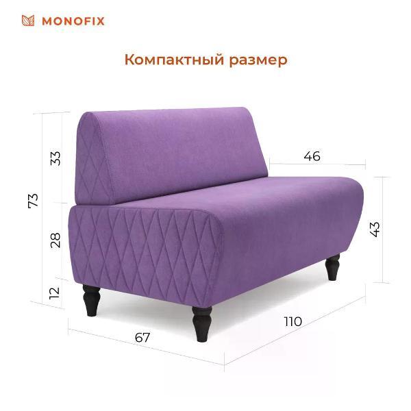 Ищете, где купить небольшой диванчик в офис, на кухню, на балкон или на дачу? Мини диван БУНО без подлокотников в обивке из мягкого велюра добавит комфорта любой комнате. Маленький и легкий - его можно использовать как офисную мебель, в зоне ожидания салона или в кафе. Ширина малютки всего 110 см, он легко встанет в прихожую, лоджию, коридор или на веранду.Малогабаритные прямые диваны без подлокотников - компактное и стильное решение для детской комнаты или студии - за счет безопасных материалов и ярких расцветок велюра. Благодаря компактности и универсальности изделие можно использовать как софу, кушетку, кресло или банкетку со спинкой.Мягкая мебель на деревянных ножках – тренд на ближайшие годы в дизайне интерьеров. Высота опор 12 см позволит легко проводить сухую и влажную уборку, мягкие противоскользящие накладки защитят ваш пол от повреждений. Фигурные ножки выполнены из массива дерева и окрашены в черный цвет. Отстрочка на боковинах добавит стиля и индивидуальности.Дополните диван мягкой и корпусной мебелью от Монофикс и получите готовое дизайнерское решение для вашего интерьера!