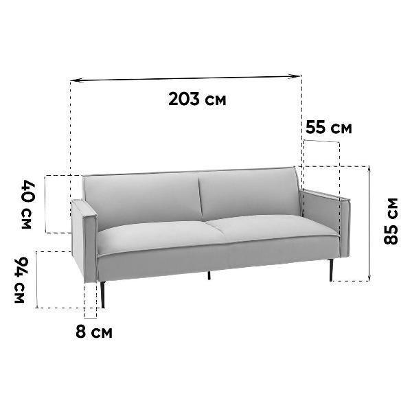Современный раскладной диван Кассель в лаконичном исполнении. Плавные линии и мягкая велюровая обивка делают модель максимально уютной и комфортной. Такой диван станет прекрасным дополнением интерьера в современном стиле.Диван оборудован механизмом «клик-кляк», который включает в себя три уровня фиксации спинки: «стандарт», «релакс» и «спальное место». В качестве наполнителя используется сочетание пенополиуретана различной плотности, что обеспечивает комфортную, упругую посадку. Благодаря такой технологии внешний вид дивана сохраняется максимально долгое время.В основании наполнителя находятся пружины «змейки» из металла, они крепятся к деревянному каркасу с ровным шагом, параллельно друг другу. Благодаря такому расположению данные пружины обладают высокой прочностью, прекрасным сопротивлением растяжению и отсутствию скрипов.Ширина дивана с подлокотниками 203 см.