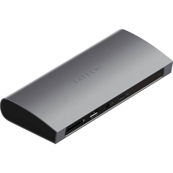 Док-станция Satechi ST-UCT4DM-EU серого цвета разработана для ноутбуков. Габариты устройства составляют 30х195х85 мм. Масса прибора — 1 кг. Длина кабеля USB — 80 см. Корпус изготавливается из авиационного алюминия. На лицевой стороне размещен индикатор включения. Питание осуществляется через USB-порт.