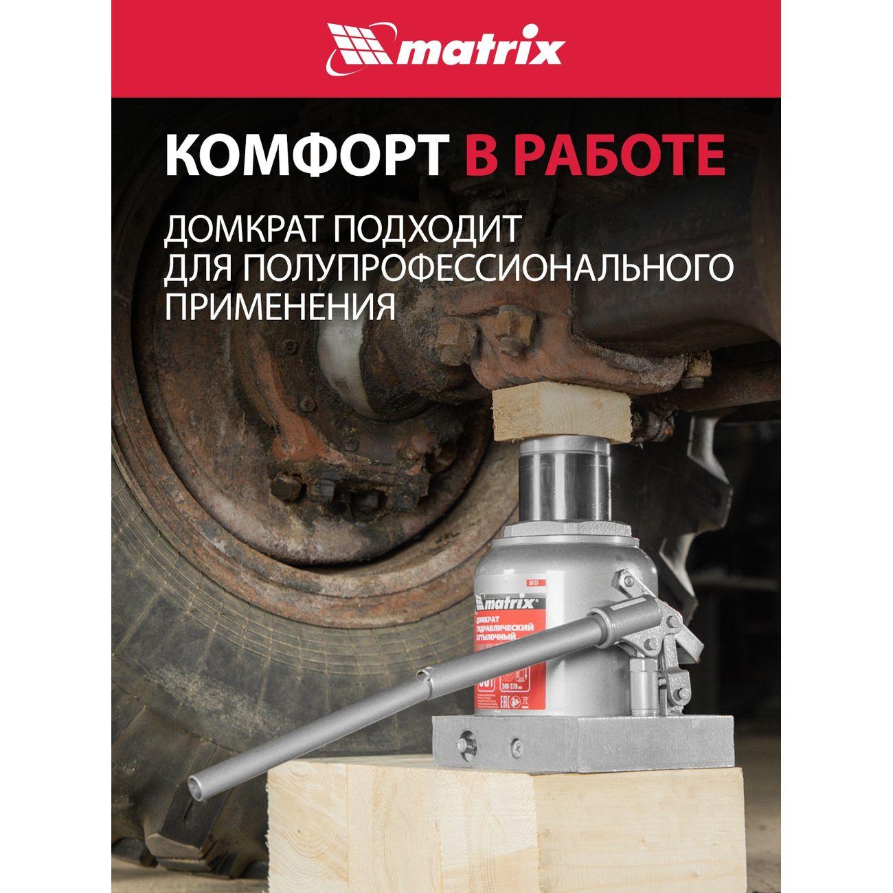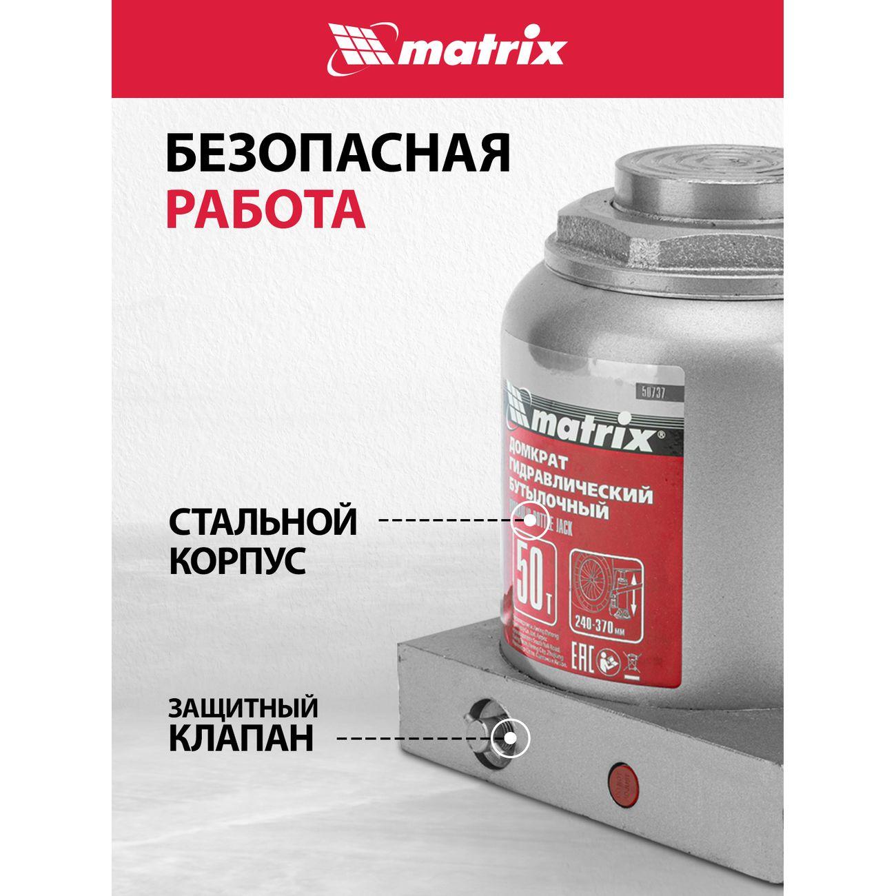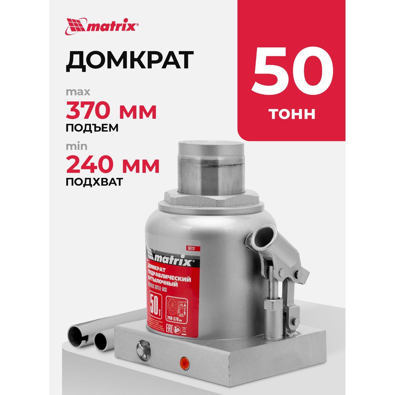 Вы можете купить Домкрат MATRIX гидравлический бутылочный 50т, 240-370мм (50737) в магазинах М.Видео по доступной цене. Домкрат MATRIX гидравлический бутылочный 50т, 240-370мм (50737): подробное описание, фото и отзывы реальных покупателей, характеристики, возможность скачать инструкции и подобрать аксессуары.