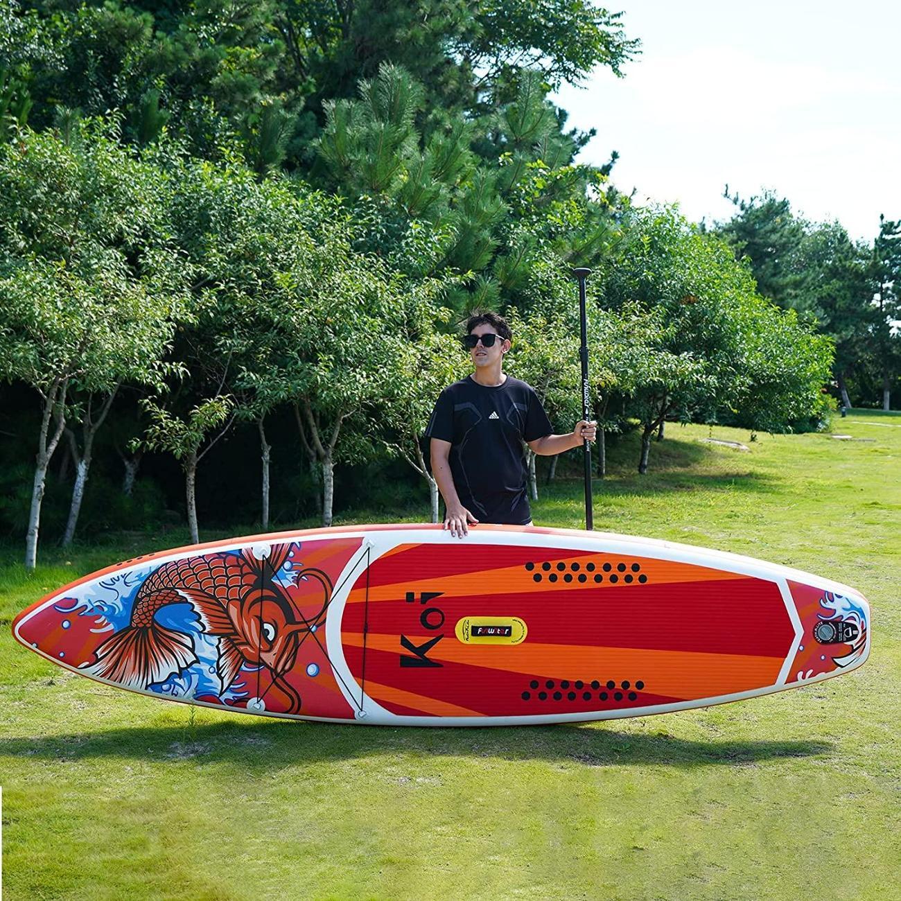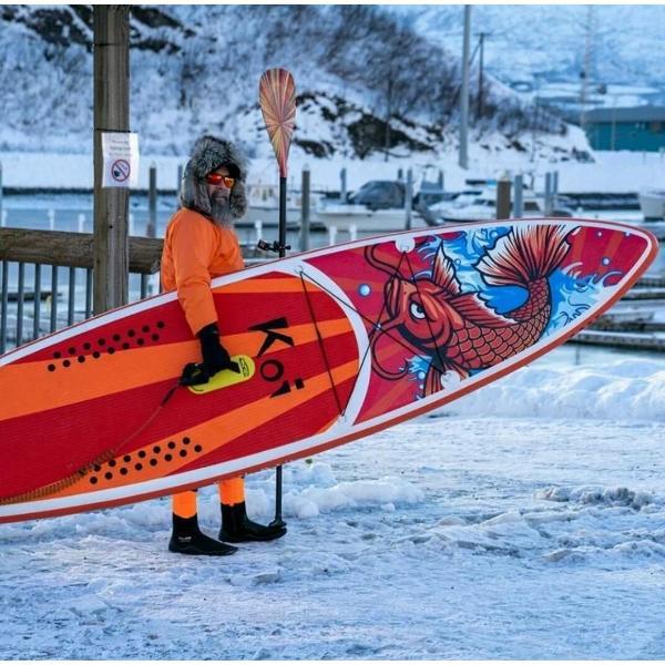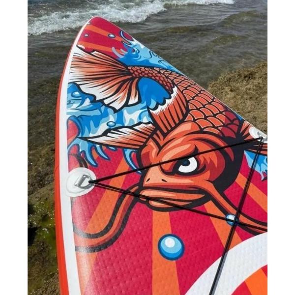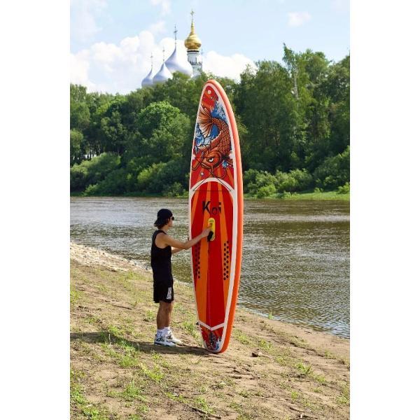 Купила Koi, пока только дома разложили и накачали для проверки (на улице холодно). Доска выглядит очень надежно, все швы ровные, комплектация полная: насос качает легко, весла удобные. Жду тепла, чтобы наконец-то выйти на воду. Качество явно на отлично!