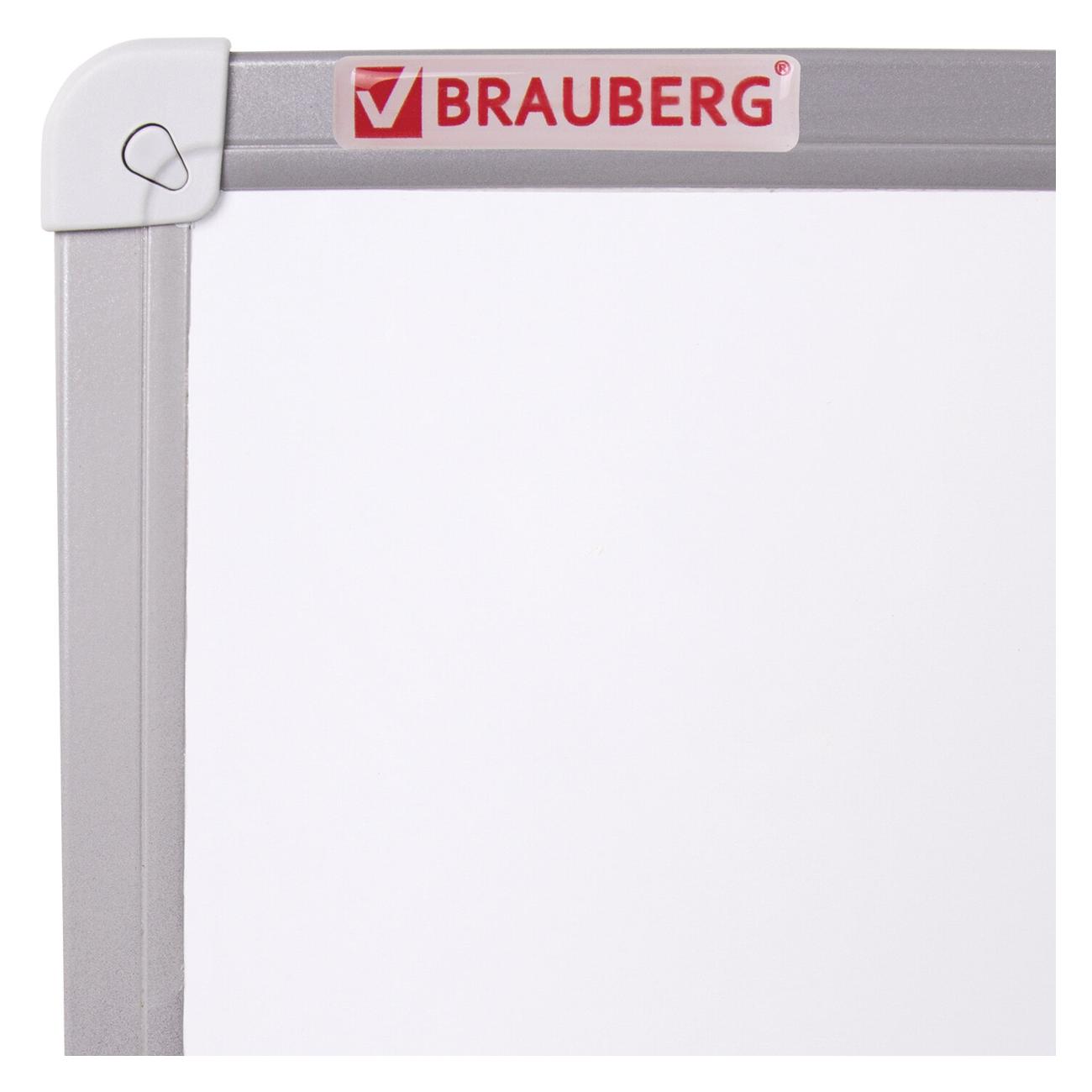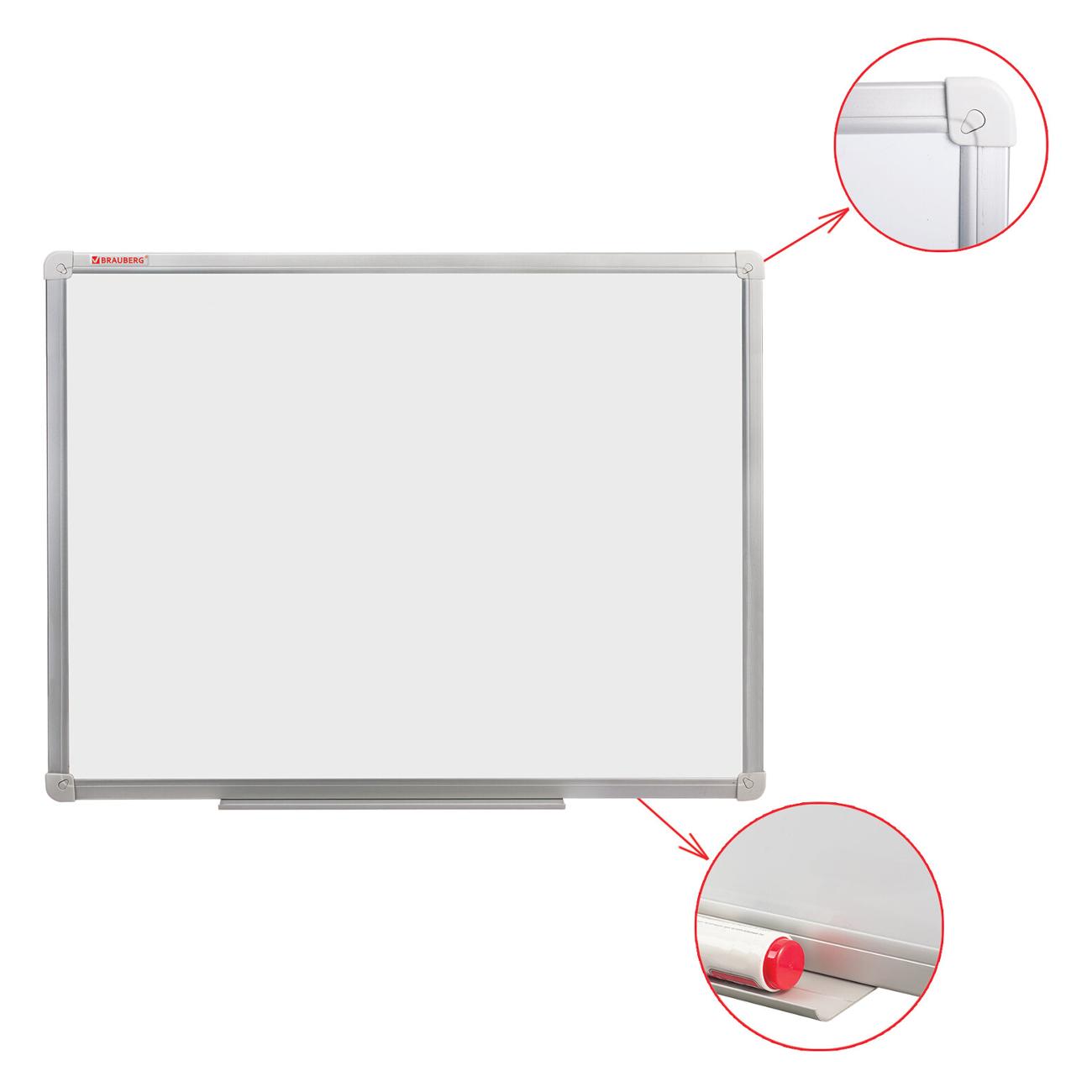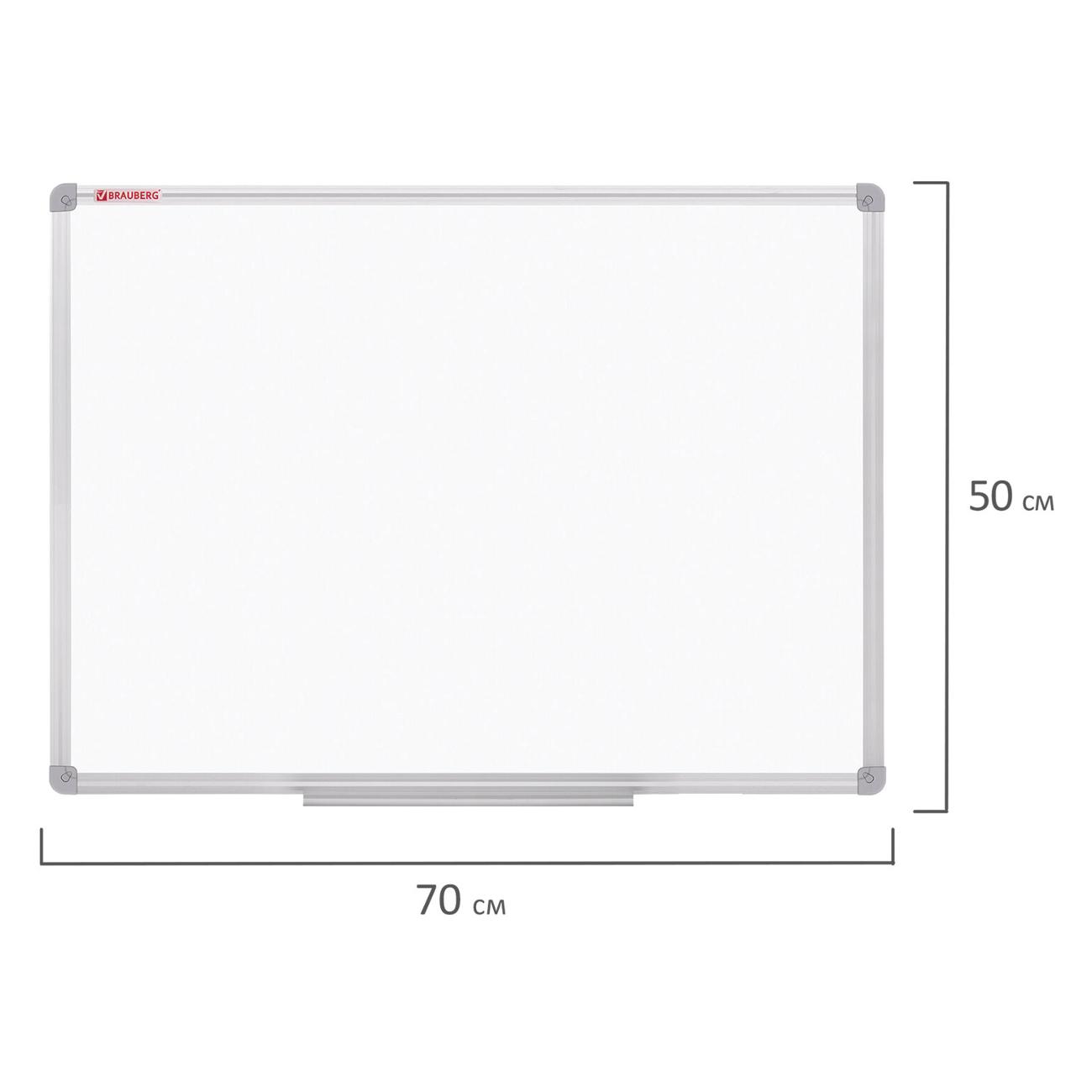 Лаковое покрытие предназначено для письма специальными маркерами для белой доски, а металлическая поверхность позволяет размещать информацию при помощи магнитов. Доска размером 70х50 см имеет укрепленные пластиковые уголки, которые позволяют скрыть места крепления к стене. Алюминиевый профиль придает изделию дополнительную прочность и современный стильный внешний вид. Полочка для аксессуаров и элементы крепления входят в комплект. При должном уходе за рабочей поверхностью доски при помощи чистящей жидкости-спрея и стирателей BRAUBERG поверхность магнитно-маркерной доски прослужит более 10 лет.