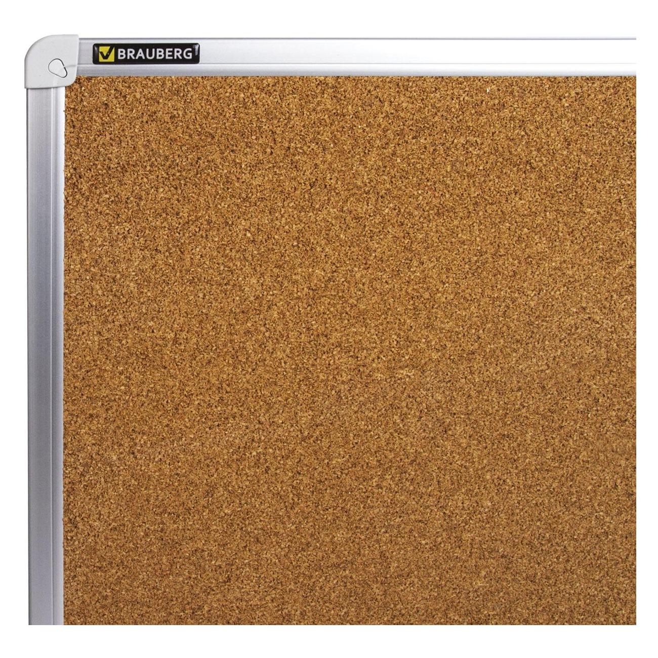 Поверхность изготовлена из натуральной пробки. Имеет улучшенную алюминиевую рамку и укрепленные пластиковые уголки. Размер доски - 45х60х1,5 см. Цвет покрытия: коричневый. Возможность горизонтального и вертикального размещения доски. Крепится к стене, элементы крепления входят в комплект. Гарантия 10 лет. Отверстия в пробке "закрываются" сразу же после извлечения кнопки. Таким образом, доска прослужит на протяжении долгих лет, несмотря на частое использование.