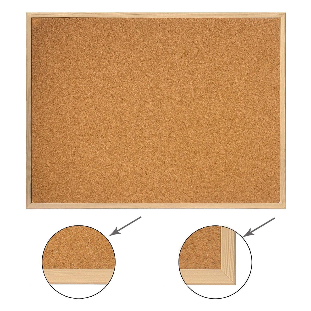 Поверхность изготовлена из натуральной пробки. Имеет деревянную рамку. Размер доски - 90х120 см. Цвет покрытия: коричневый. Возможность горизонтального и вертикального размещения доски. Крепится к стене, элементы крепления входят в комплект. Гарантия 10 лет. Отверстия в пробке "закрываются" сразу же после извлечения кнопки. Таким образом, доска прослужит на протяжении долгих лет, несмотря на частое использование.