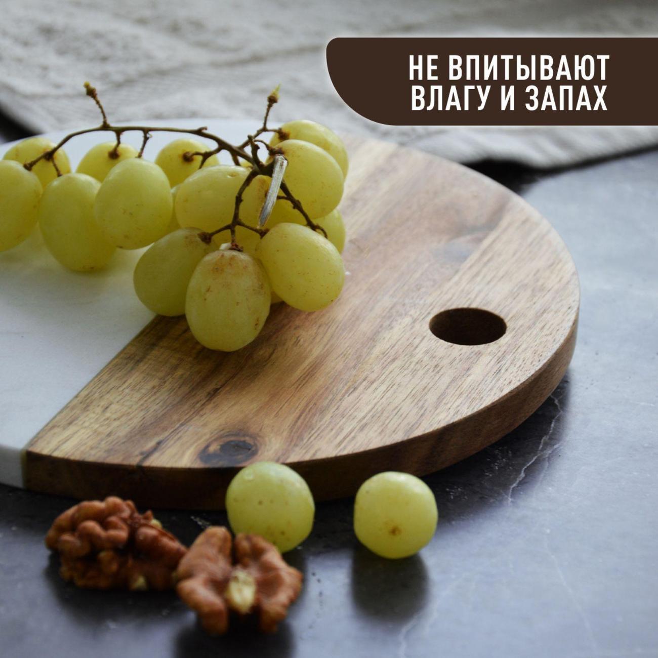 Замечательная доска для красивой сервировки стола. Достаточно компактная, но много всего помещается.Получается очень красиво. Материал доски приятный на ощупь, гладкий.