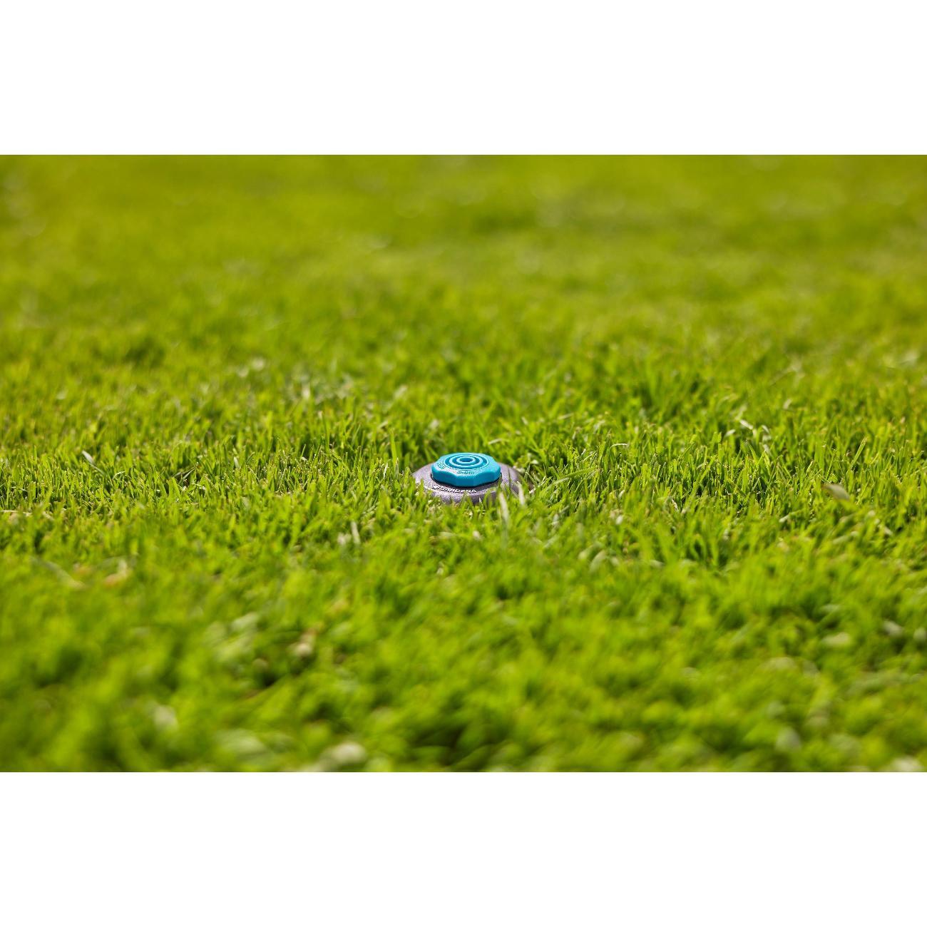 Выдвижной дождеватель SD80 — часть системы подземного полива GARDENA — обеспечивает автоматический полив для небольших участков газона.