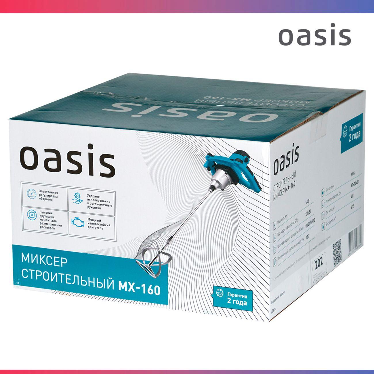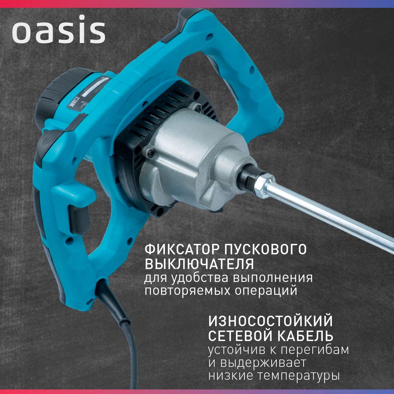 Строительный миксер Oasis MX-160 – это решение для приготовления строительных смесей: от бетона и штукатурки до красок и клеев. Инструмент даёт полный контроль над процессом, обеспечивая высокое качество конечной смеси для профессиональной и бытовой отделки.