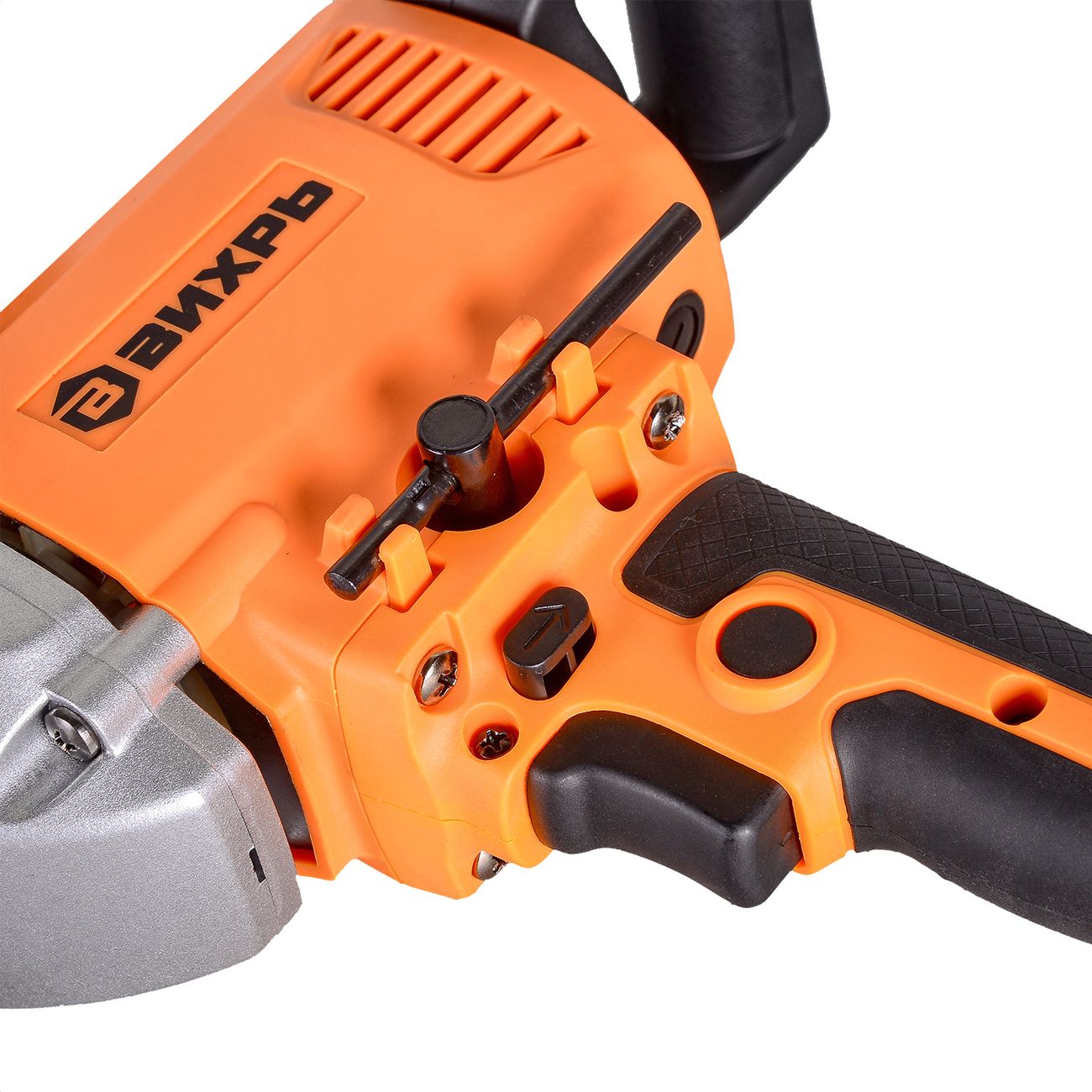 Кнопка включения дополнительно служит регулятором скорости. На корпусе есть фиксатор этой клавиши, что позволит без напряжения работать длительное время. Надёжное удержание устройства обеспечивает дополнительная боковая рукоять. Задняя вращается на 360⁰ – вы сможете подобрать наиболее удобный хват.