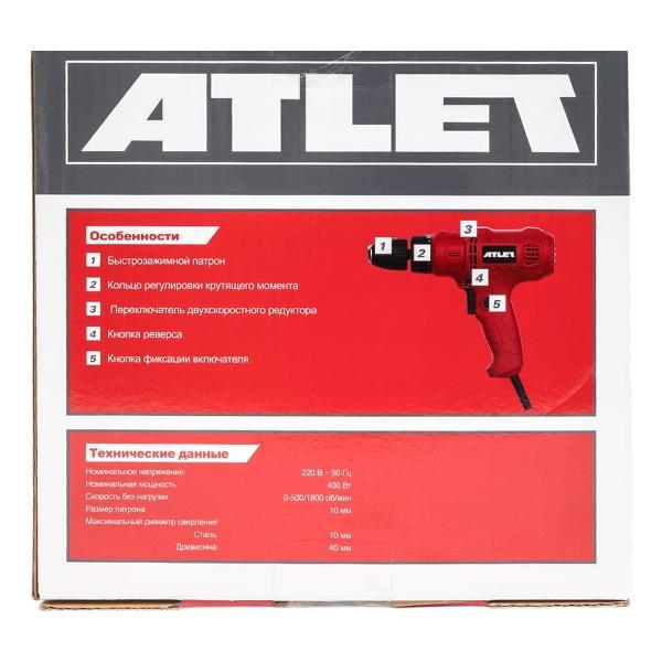 Вы можете купить Дрель-шуруповерт ATLET PDN400N в магазинах М.Видео по доступной цене. Дрель-шуруповерт ATLET PDN400N: подробное описание, фото и отзывы реальных покупателей, характеристики, возможность скачать инструкции и подобрать аксессуары.
