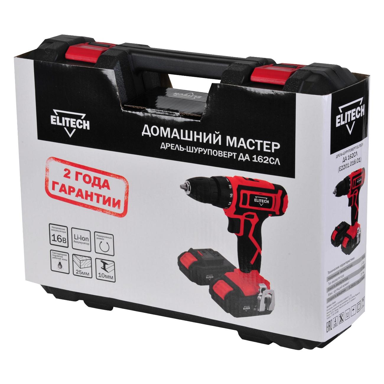 Дрель-шуруповерт Elitech ДА 162СЛ — электроинструмент бытового класса с регулировкой оборотов (максимальное число до 1350 в минуту). Предназначен для выполнения ремонтно-строительных работ. Диаметр сверления в дереве и металле — до 25 мм и 10 мм соответственно. Может применяться для заворачивания крепежа. Реверс изменяет направление движения — на случай, если оснастка застрянет в материале.
