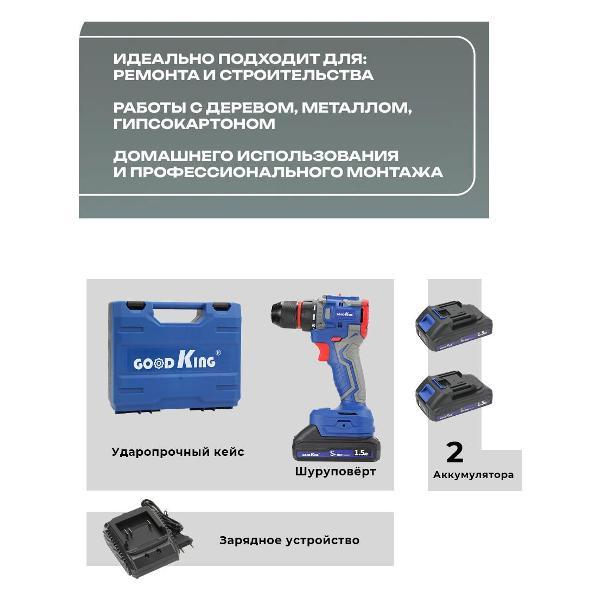 Вы можете купить Дрель-шуруповерт GOODKING EB-2002004 в магазинах М.Видео по доступной цене. Дрель-шуруповерт GOODKING EB-2002004: подробное описание, фото и отзывы реальных покупателей, характеристики, возможность скачать инструкции и подобрать аксессуары.