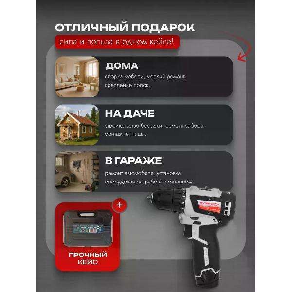использую на постоянке дома на работе. с профнастилом, деревом кое каким металлом справляется отлично, вообще их твердость не чувствует. кейс сразу в дело пошел, храню там все биты. интерскол молодцы, сделали компактную пушку. Если нужен легкий и сильный шурик, этот пойдет.