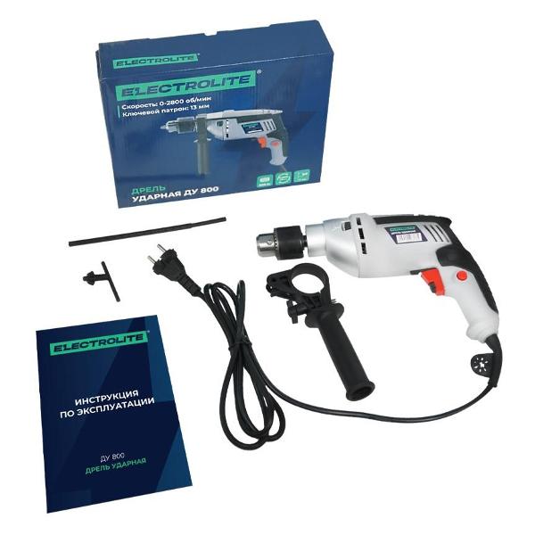 Вы можете купить Дрель ударная ELECTROLITE ДУ 800 в магазинах М.Видео по доступной цене. Дрель ударная ELECTROLITE ДУ 800: подробное описание, фото и отзывы реальных покупателей, характеристики, возможность скачать инструкции и подобрать аксессуары.