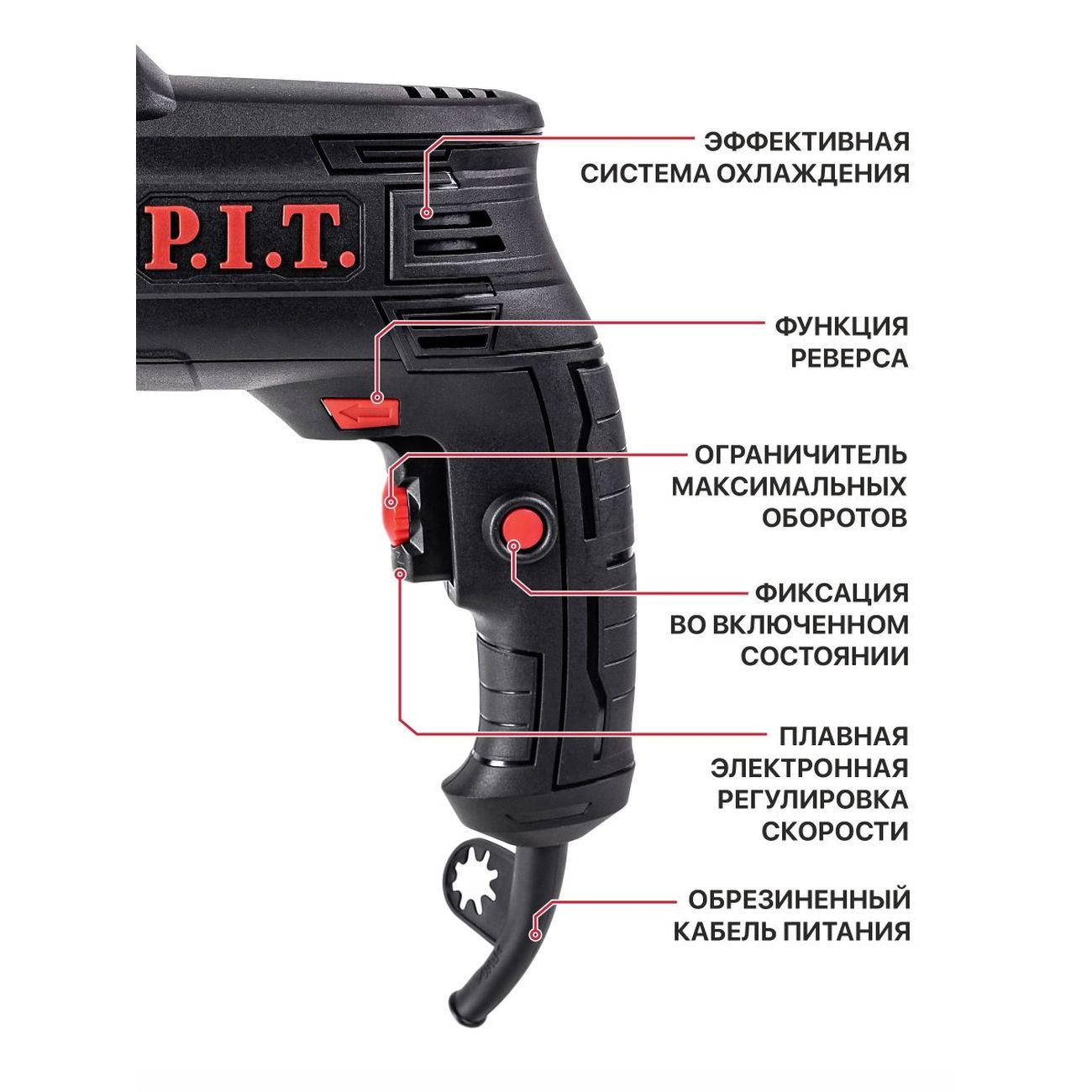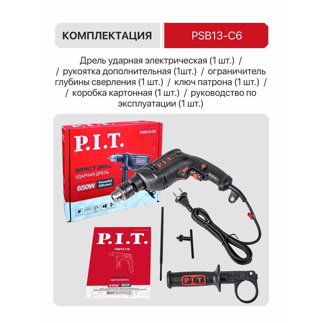 Ударная дрель P.I.T. PSB13-C6 предназначена для сверления отверстий в различных материалах.