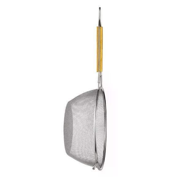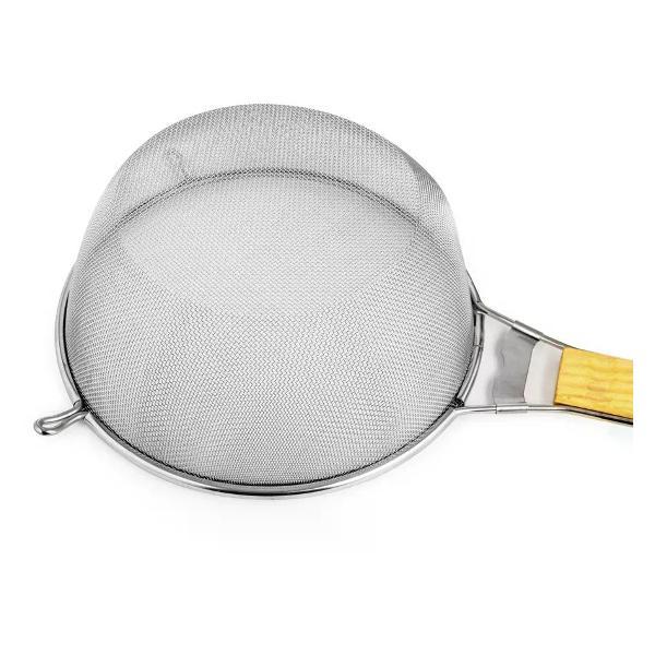 Удобный в использовании дуршлаг LARA LR03-50 идеально подойдет для мытья ягод, процеживания бульона и сливания жидкости с отварных продуктов. Деревянная вставка защищает ручку от поломок и придает ей жесткость. Два ушка и удлиненный крючок служат опорами, если вы хотите поставить дуршлаг сверху кастрюли или миски. Сталь с высоким содержанием хрома не ржавеет. Диаметр изделия: 21,5 см