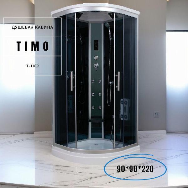 Душевые кабины Timo Standart - одна из первых серий, которая появилась на российском рынке сантехники. Даже по сей день, она вызывает устойчивый спрос и интерес среди покупателей благодаря примененному решению в дизайне: использовать в качестве задних стенок синее стекло с зеркальным эффектом. Это позволяет применять холодные цвета в интерьере без ущерба визуального уменьшения пространства ванной комнаты. Стоит отметить, что коллекция Timo Standart включает в себя обширный ассортимент компактных душевых кабин и гидромассажных боксов самых больших размеров, отличающихся между собой функционалом.
