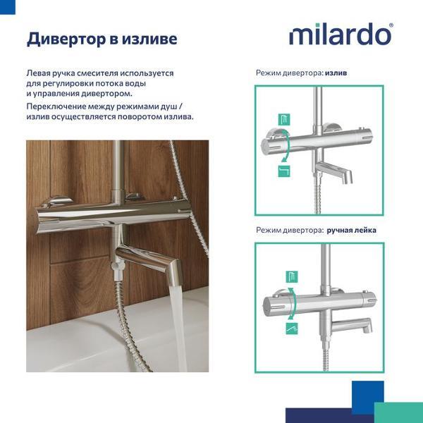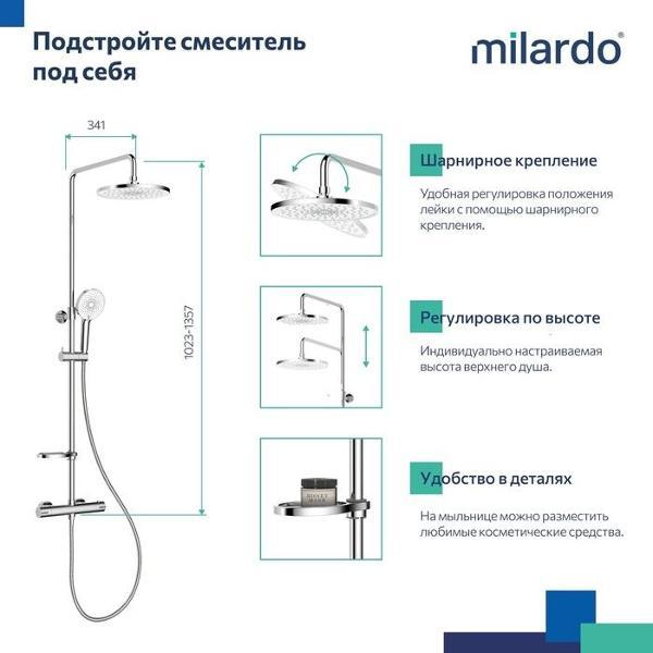 Вы можете купить Душевая панель, гарнитура, душ Milardo ILSSBTHM06 в магазинах М.Видео по доступной цене. Душевая панель, гарнитура, душ Milardo ILSSBTHM06: подробное описание, фото и отзывы реальных покупателей, характеристики, возможность скачать инструкции и подобрать аксессуары.